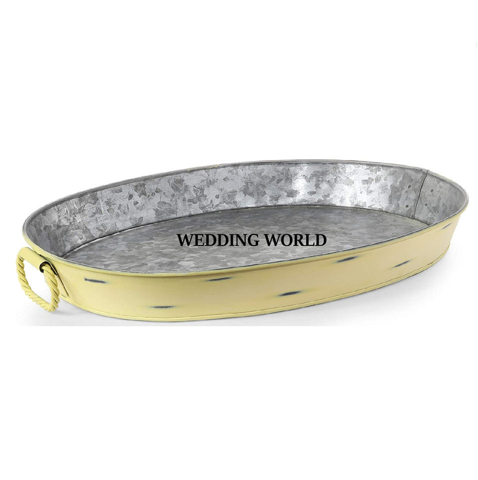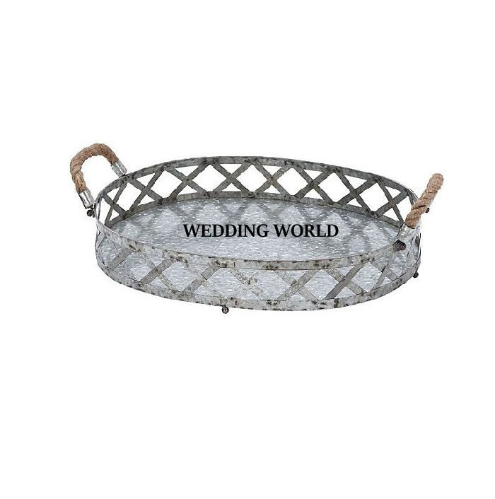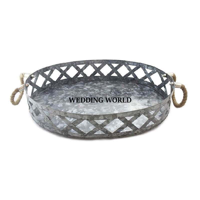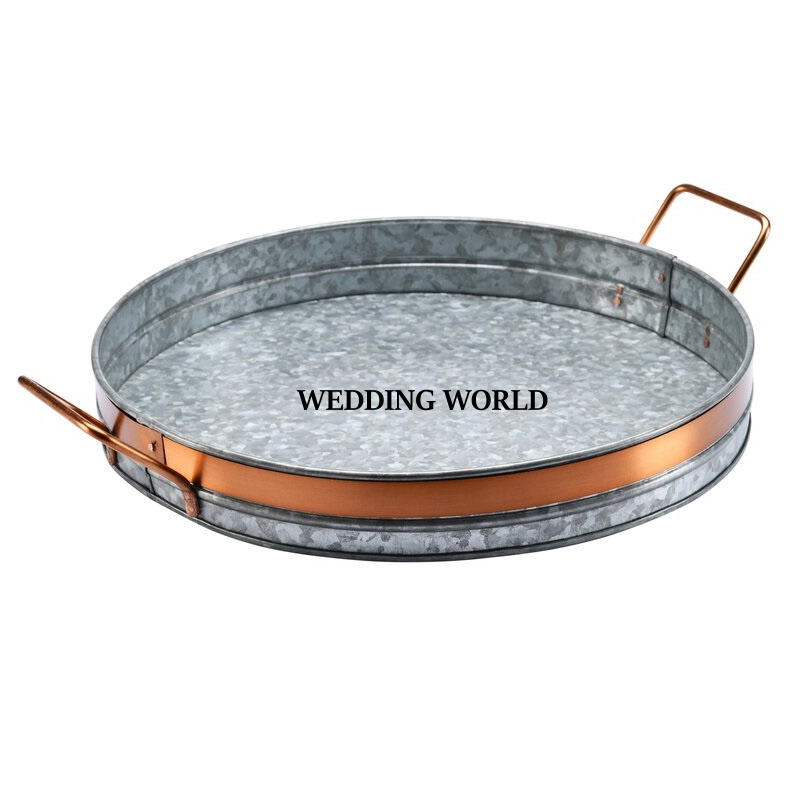Bandeja de servicio galvanizada Forma redonda Hecho a mano Venta caliente Diseñador Vajilla de lujo Mesa Decorativa Bandeja DE SERVICIO DE METAL al por mayor