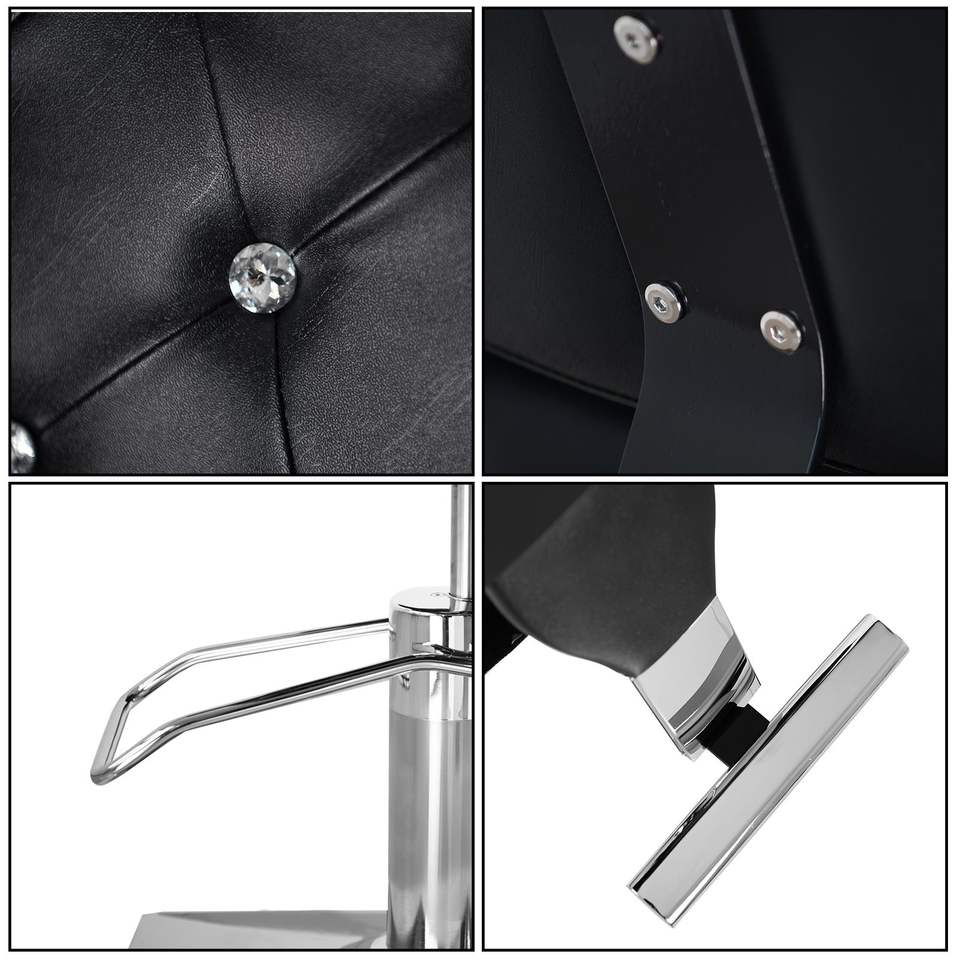 Silla de Barbero Negra HZ88111 N001 con Bandeja Cuadrada Galvanizada, Cubierta de Cuero PVC y Reposapiés Retráctil, Capacidad de 300.00lbs
