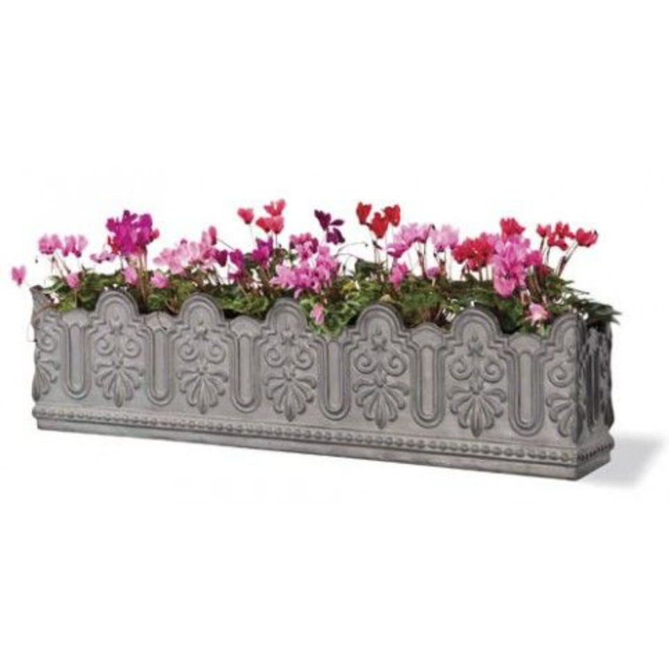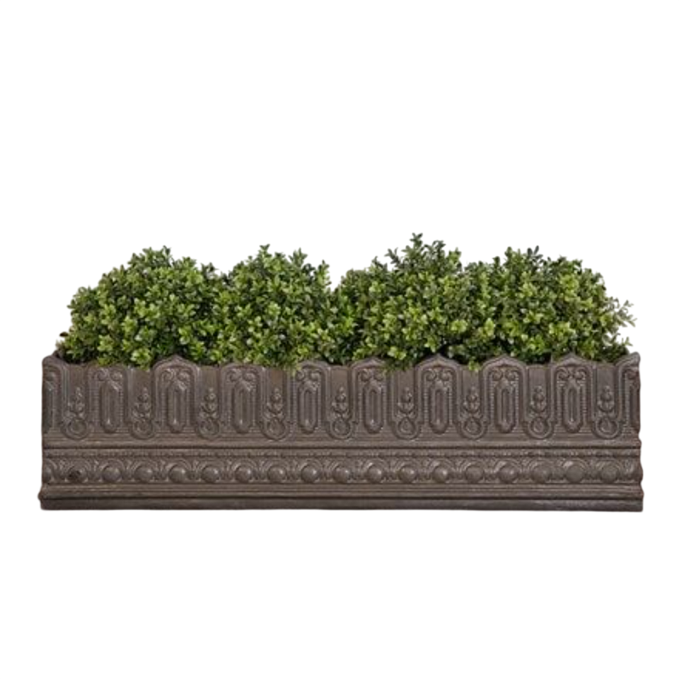 Jardinera de Acero Galvanizado con Diseño Floral en Relieve, Jardinera Rectangular Clásica de Metal para Cultivo en Interiores