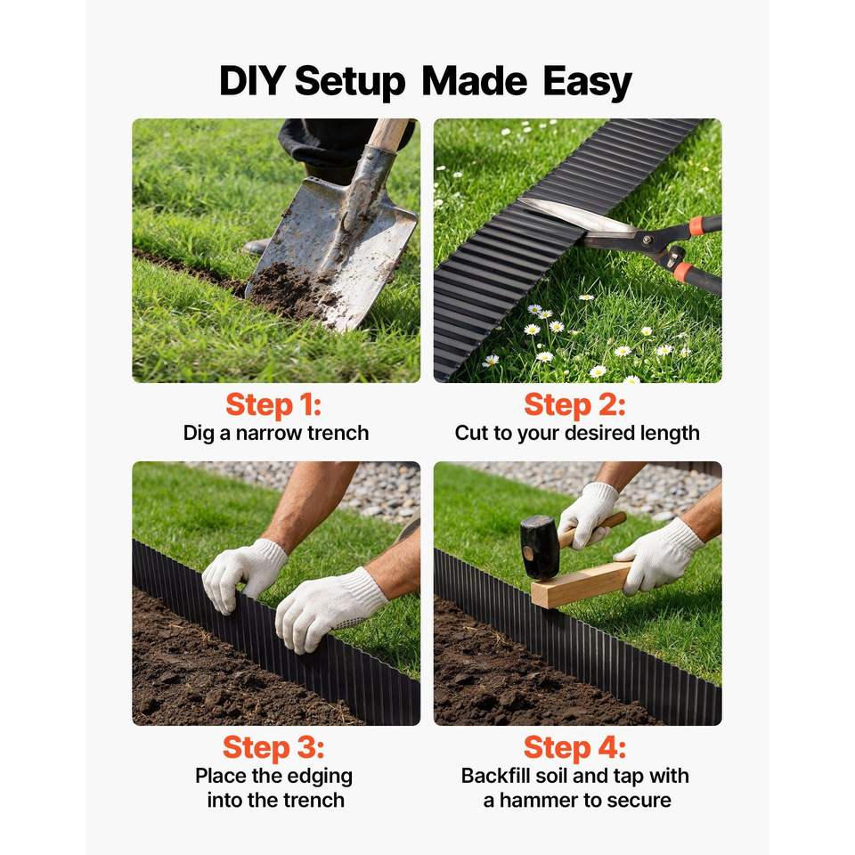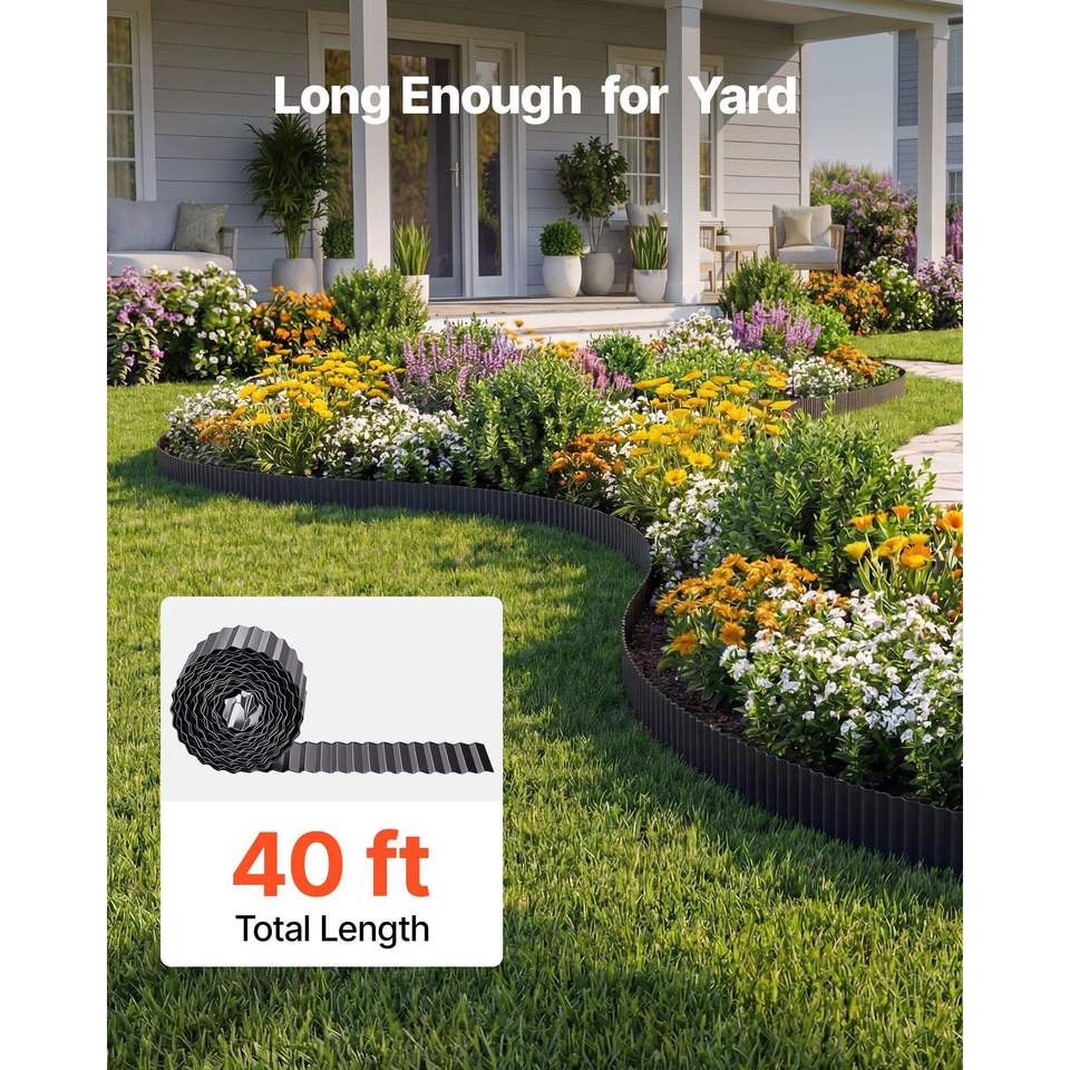 Borde de Acero Galvanizado para Jardín, 40 pies x 6 pulgadas, Tiras Metálicas Flexibles, Fáciles de Instalar, Guantes de Jardinería para Terrazas y Paisajismo