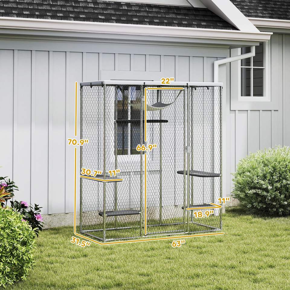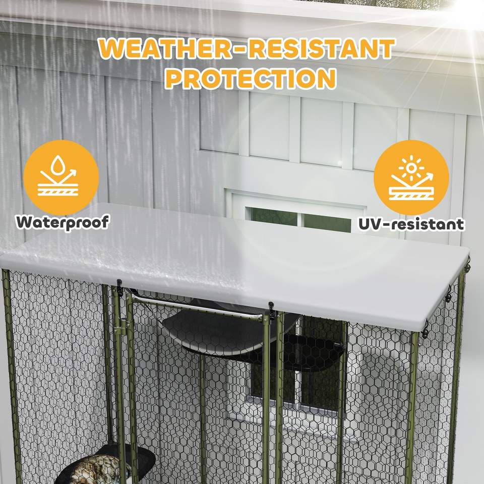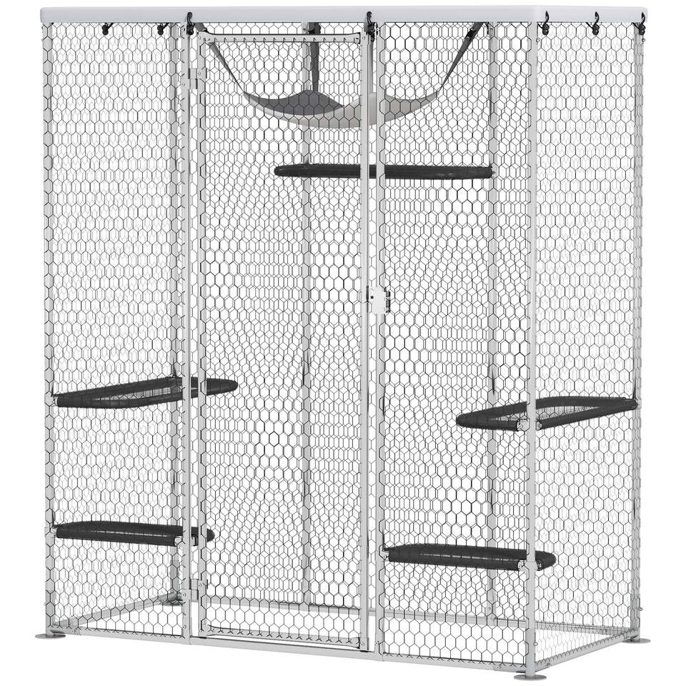 Jaula para Gatos de Acero Galvanizado con Cubierta Impermeable, 5 Plataformas Ajustables, Hamaca, Catio para Exteriores, Muebles para Mascotas