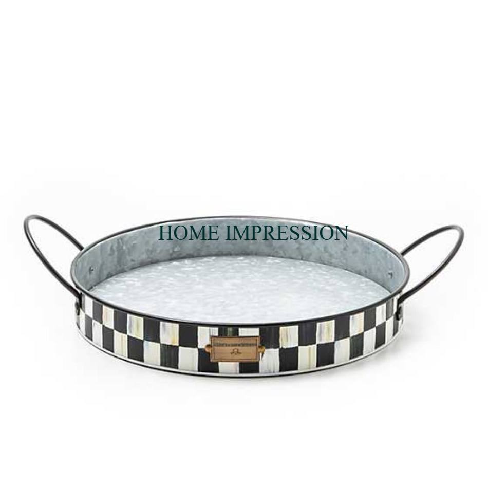 Juego de 2 bandejas galvanizadas, forma y tamaño personalizados, Bandejas para servir comida de restaurante seguras con asas de hierro, bandeja de catering para restaurante
