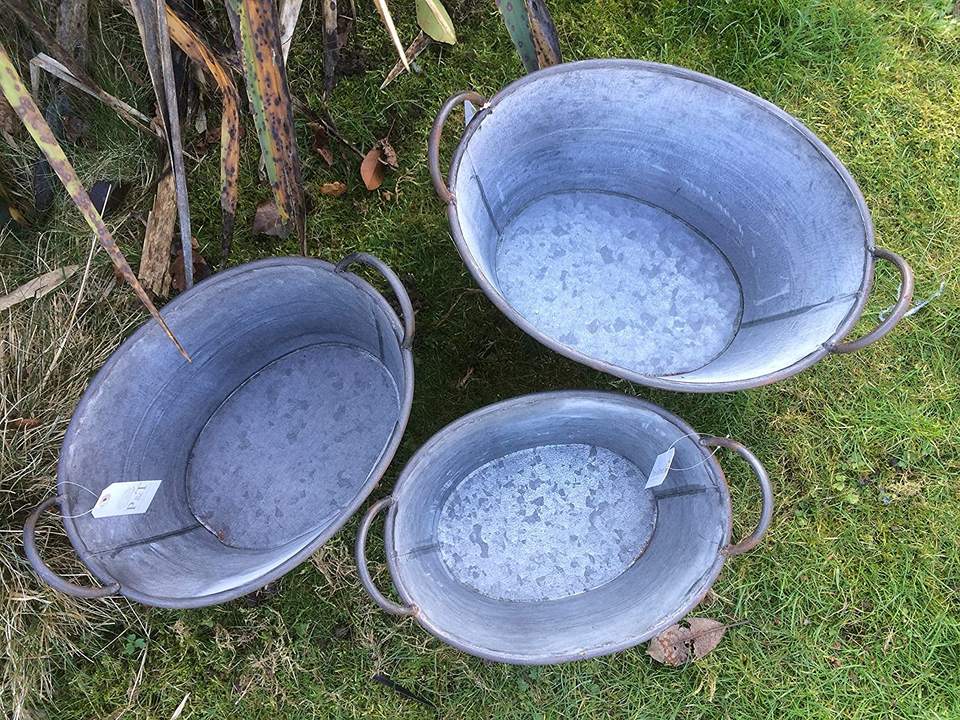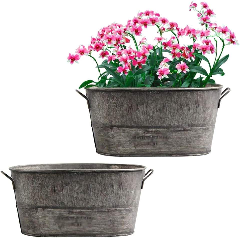 Tina de bebida galvanizada grande con asas de madera para maceta de flores de jardín o uso doméstico que sirve como Cubo de maceta