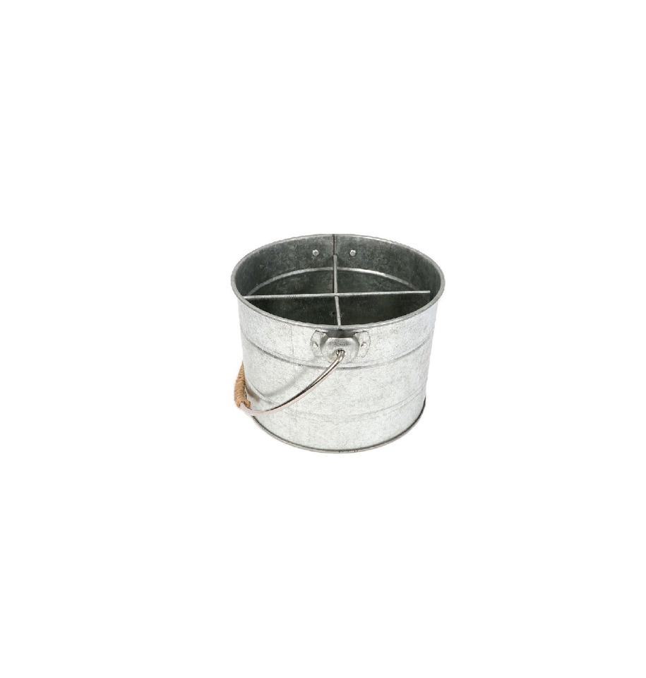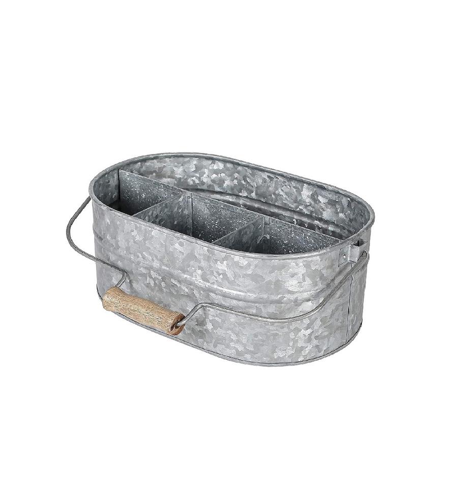 Portautensilios de Cocina Galvanizado de Dos Compartimentos con Asa Plegable de Madera y Cesta Metálica con Certificación CE para Utensilios de Cocina