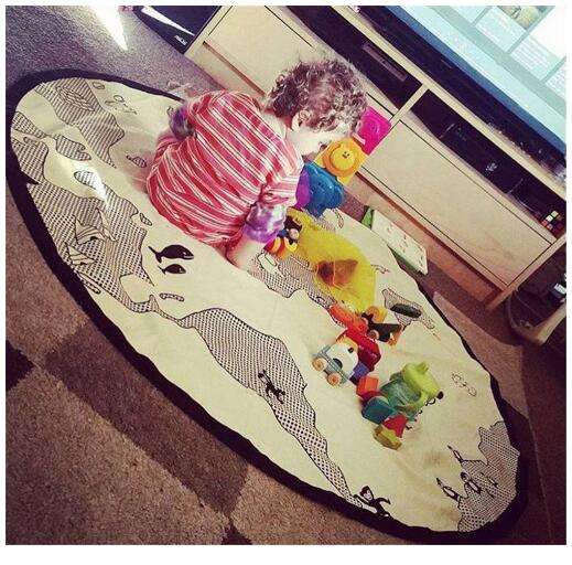 Manta de juego para niños y bebés, tapete redondo de 53 pulgadas con patrón de mapa del mundo de aventura para gatear