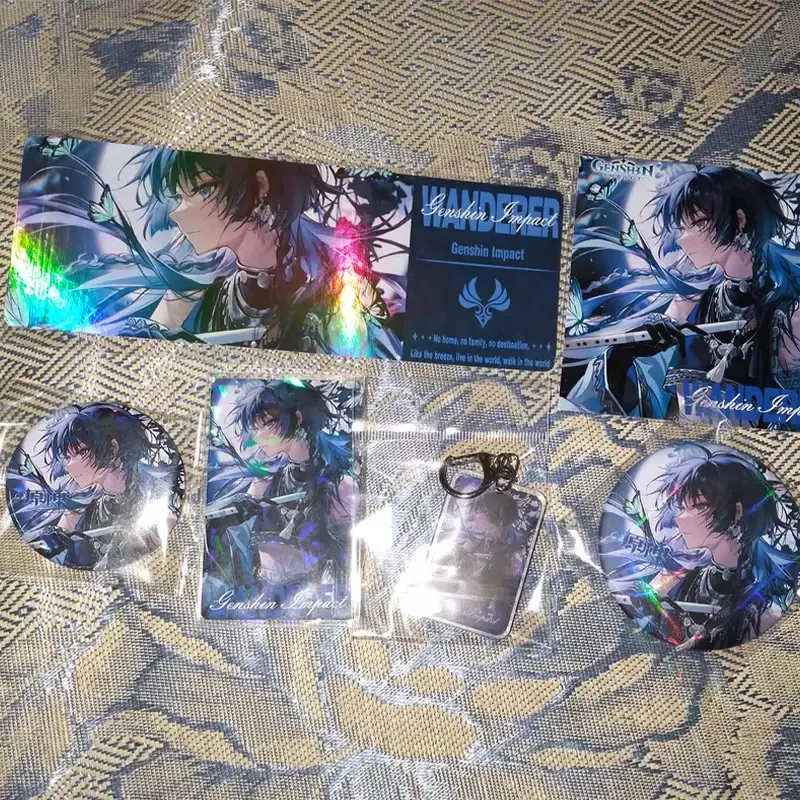Juego de dibujos animados Genshin Impact Set Wanderer colección juguete llavero láser insignia Lomo tarjeta postal láser tarjeta mangas regalo