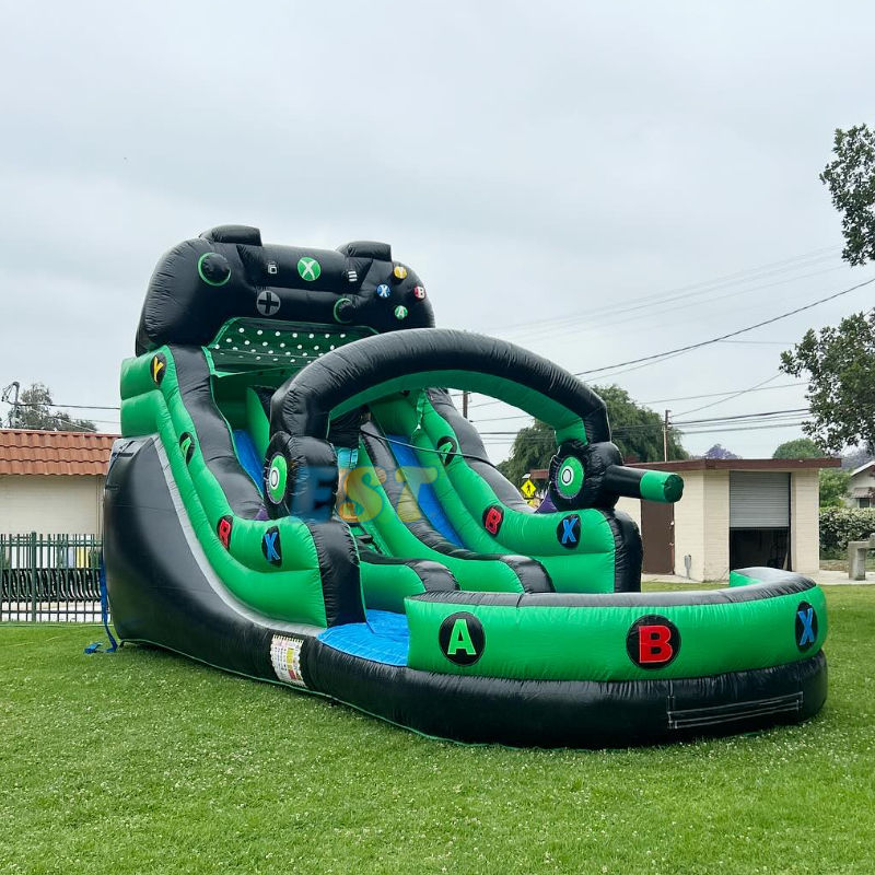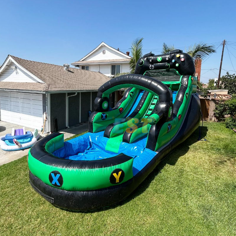 Consolas de juegos Tobogán de agua inflable de doble carril Tobogán de piscina inflable Tobogán de piscina al aire libre para equipo de alquiler de fiestas