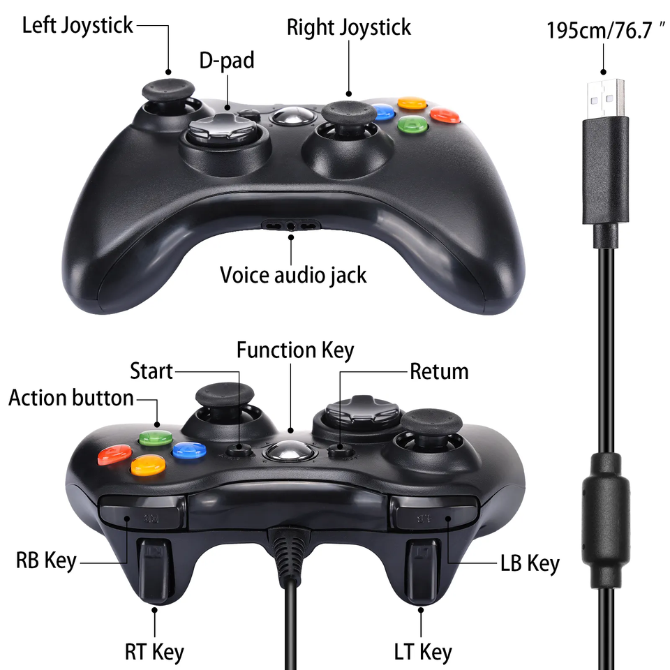 Gamepad para Microsoft Xbox 360, Control con Cable, Joystick, Mando USB para Xbox 360 y PC