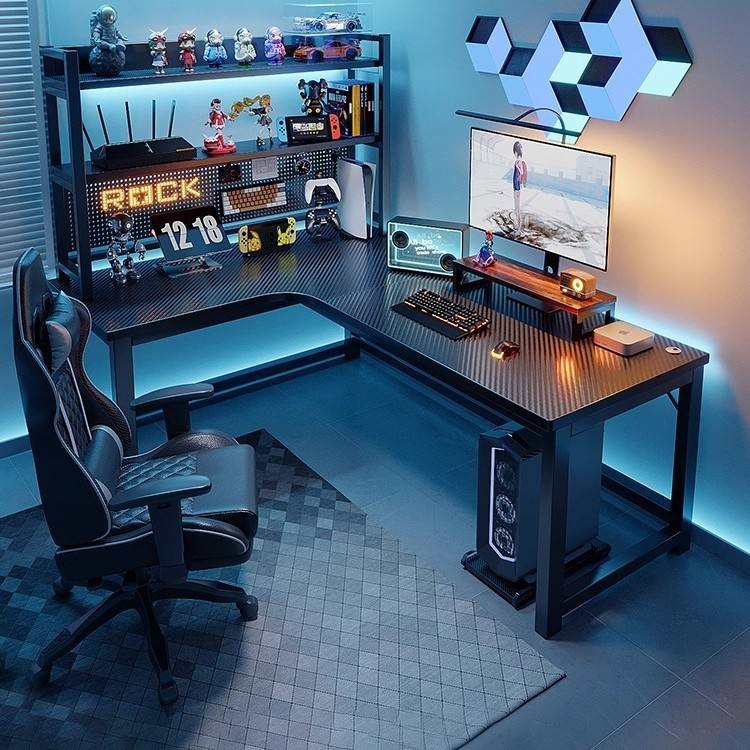 Escritorio para Juegos en Forma de L, Mesa para Jugadores de Deportes Electrónicos, Escritorio para PC, Escritorio para Juegos de Fibra de Carbono