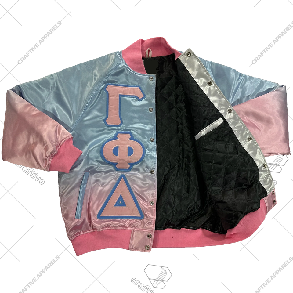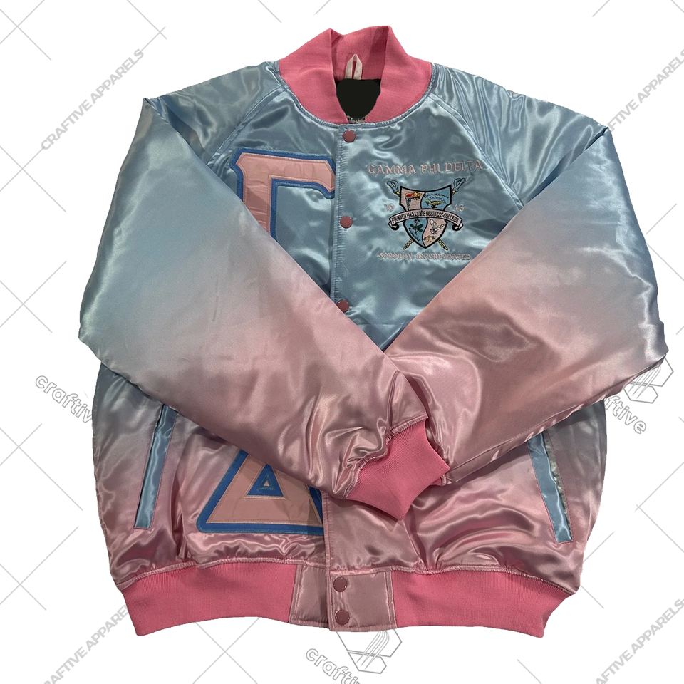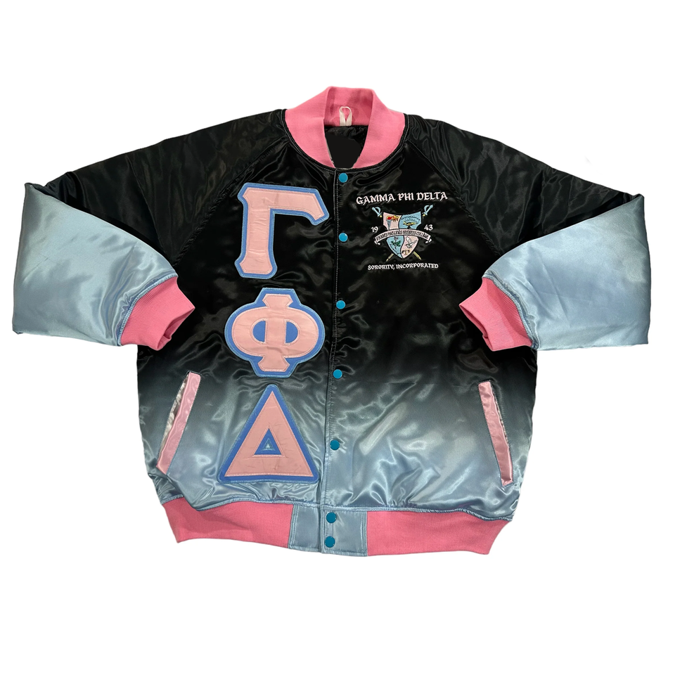 Gamma Phi Delta Sorority Shiny Ombre Satin Chaqueta