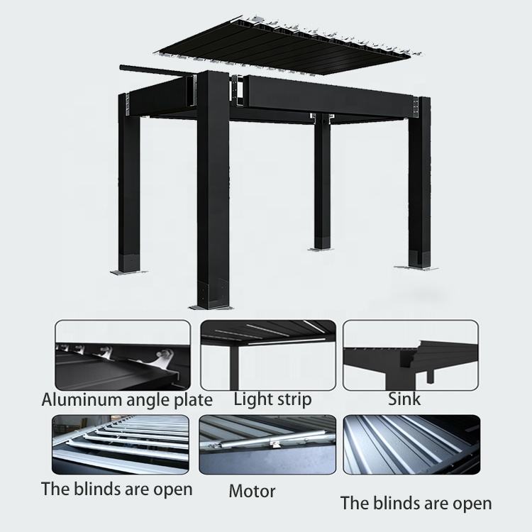 Palabras clave:Pérgola de jardín con techo de lamas abatibles de aluminio