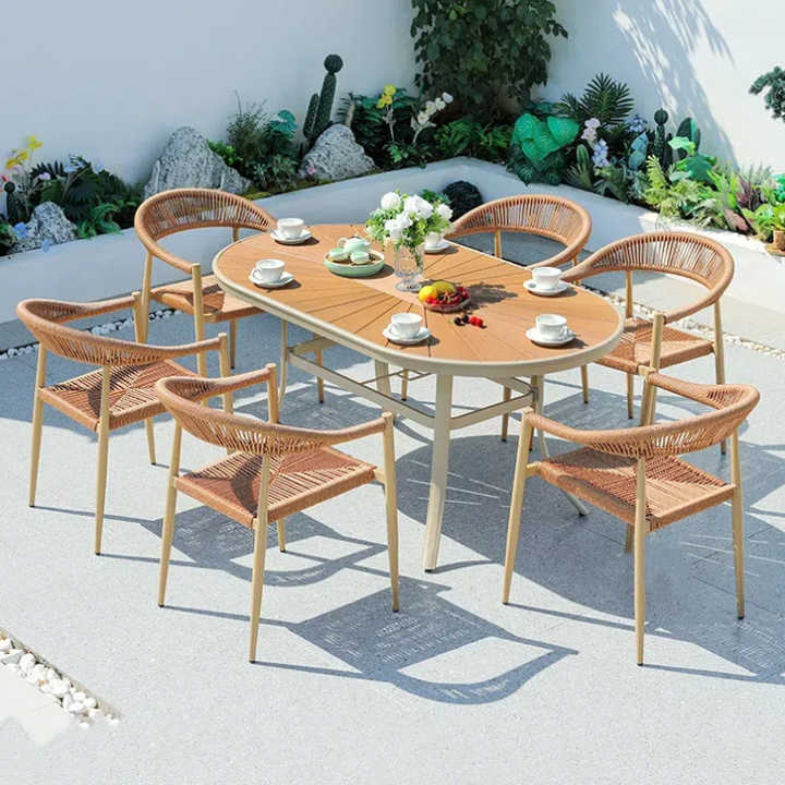 Nombre del producto:Sillas tejidas a mano de madera plásticas de aluminio al aire libre de las tablas del estiramiento