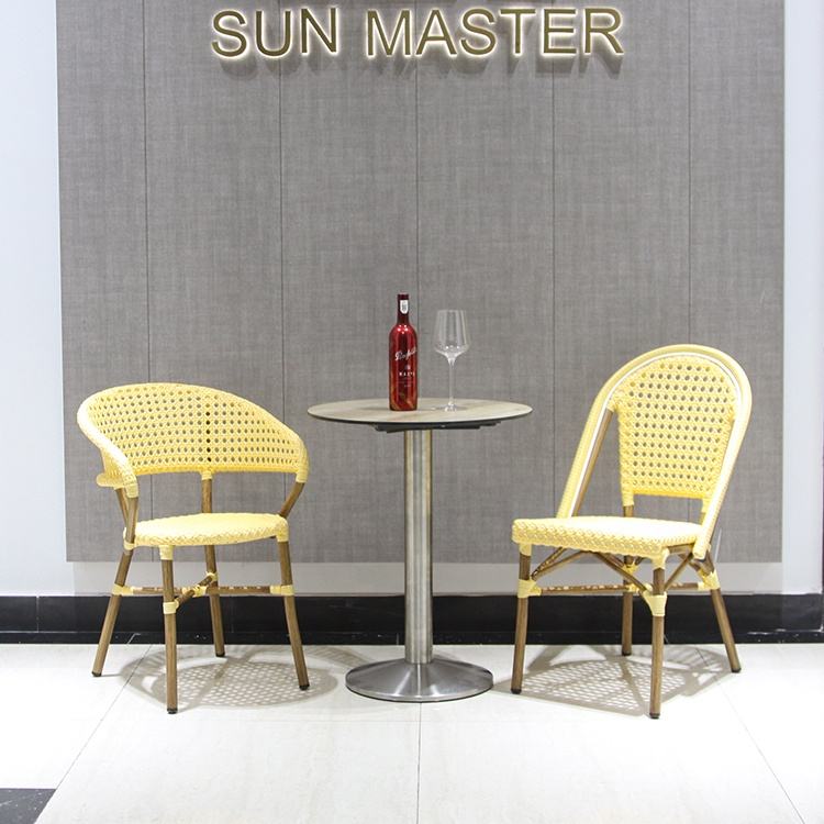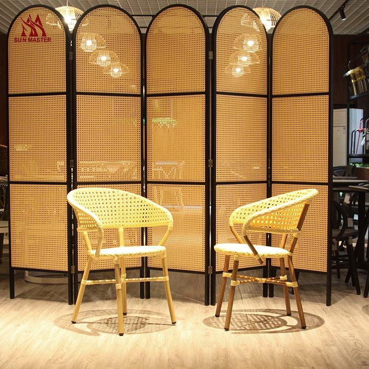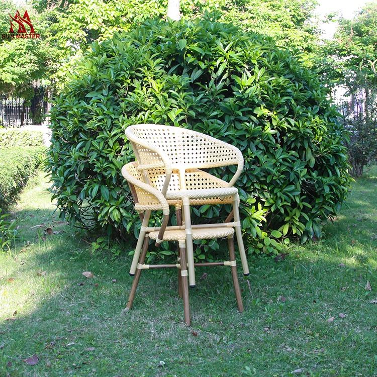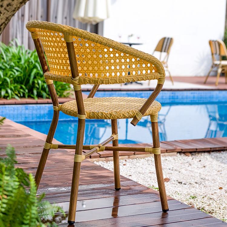 Muebles de jardín Silla de ratán para exteriores Apilable Bambú Rústico Bistro Hotel Patio terraza Sillones para cafeterías Restaurantes