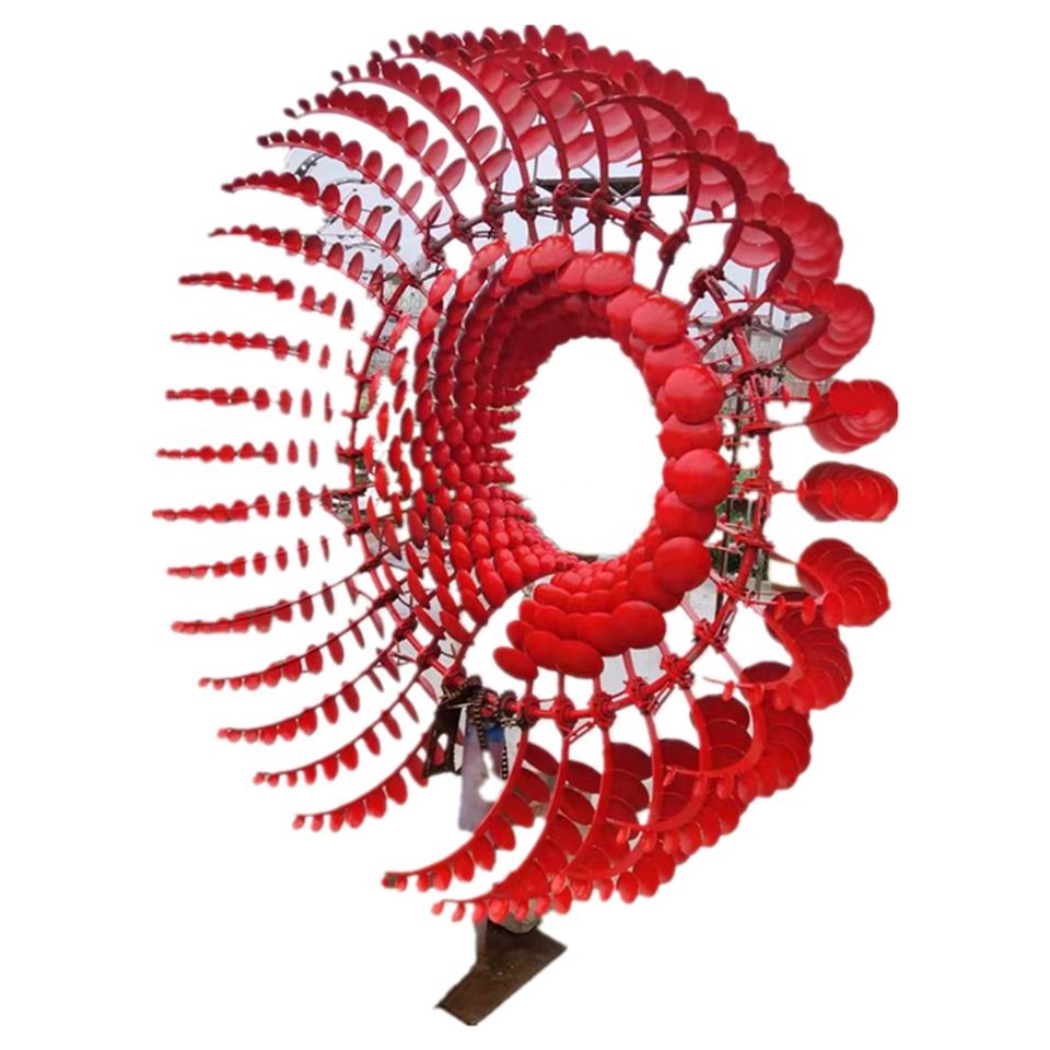 Decoración artística de Metal para paisajismo y jardín, escultura cinética de viento para exteriores con luz de Color de acero inoxidable para público, con Led
