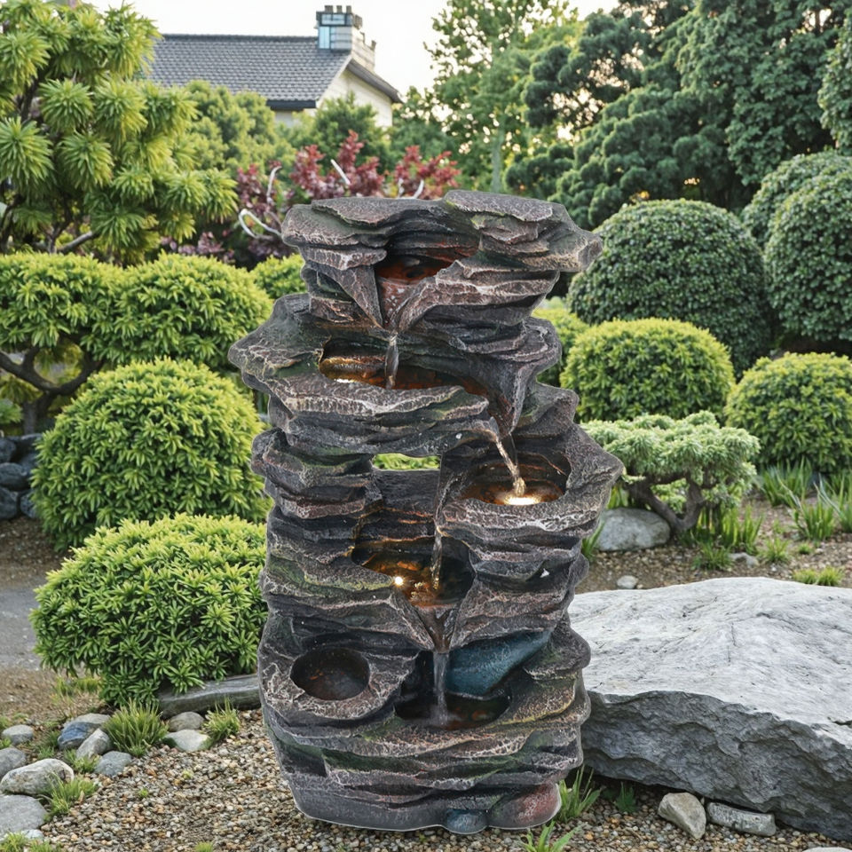 Nombre:Patio fuente de agua eléctrica relajante Gnomo adornos al aire libre resina