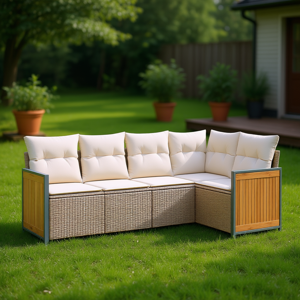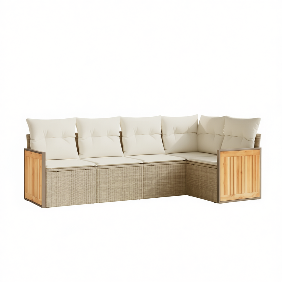 Conjunto de Sofás de Jardín en Ratán Sintético PE Beige, Muebles de Exterior con Cojines de Espuma de Alta Densidad, Diseño Contemporáneo para Jardín