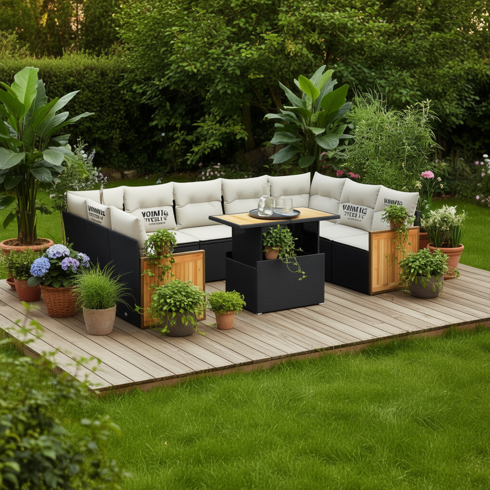 Conjunto de Sofás de Jardín en Ratán Sintético Negro, Muebles de Exterior con Cojines de Espuma de Alta Densidad, Diseño Contemporáneo Impermeable