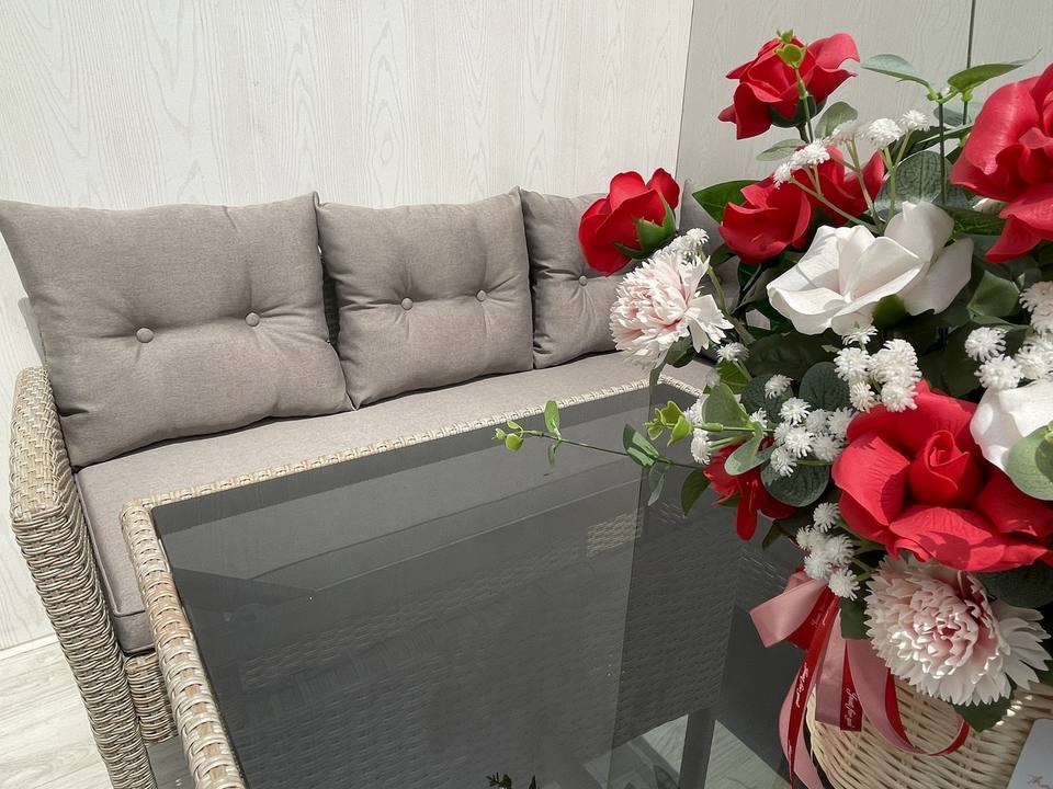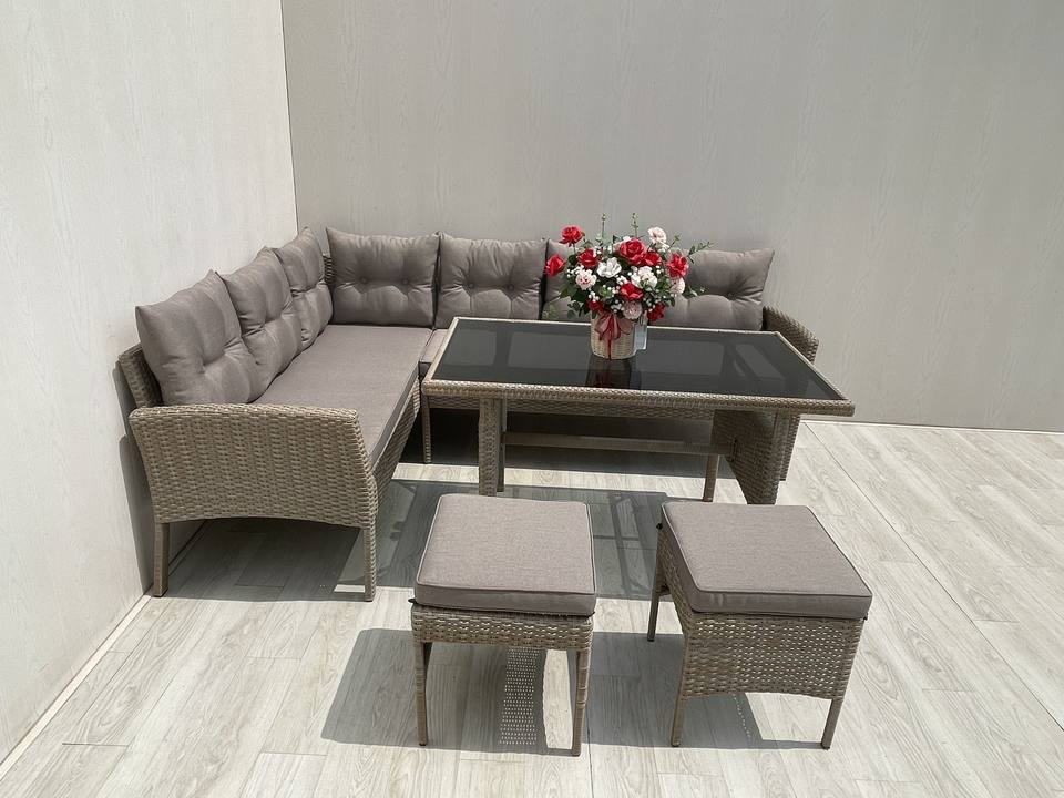 De ratán, de acero, de vidrio templado, cojín de poliésterMaterial