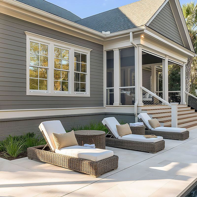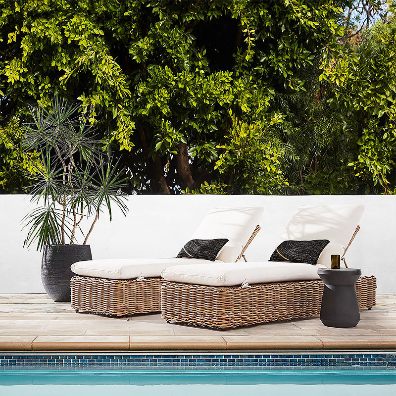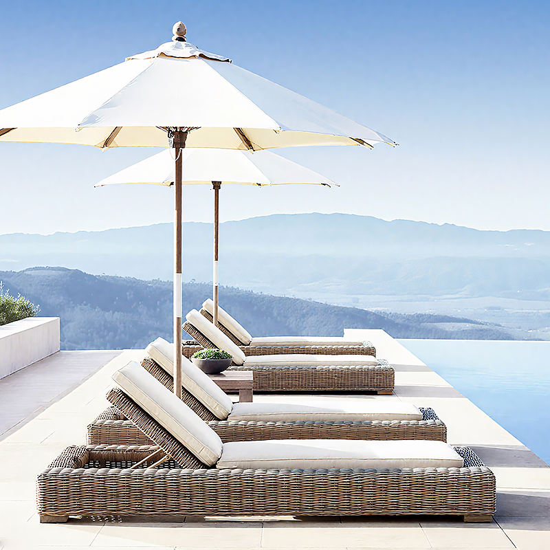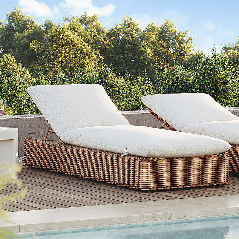 Ratán resistente a los rayos UV: El material de ratán resistente a los rayos UV garantiza que el tumbona mantenga su color e integridad incluso con exposición prolongada al sol.