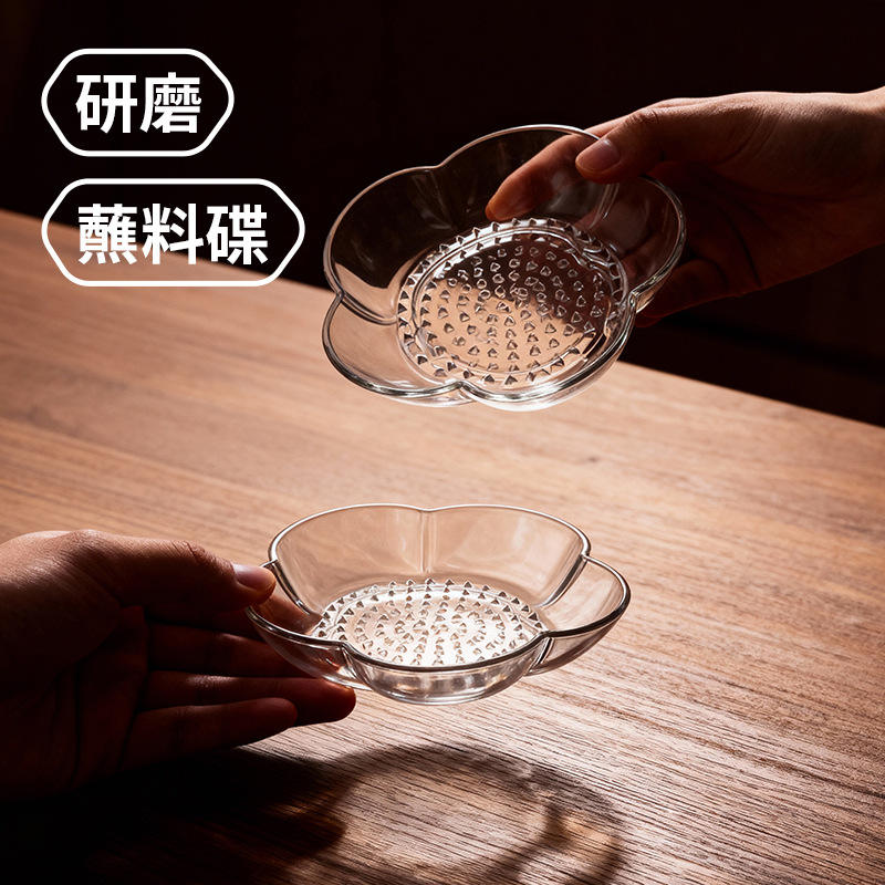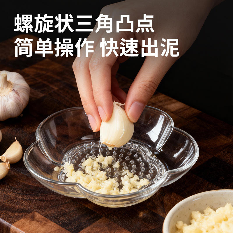 Garlic Grinder Condiment Dish Set 2 Pack Transparent Glass For Kitchen Use