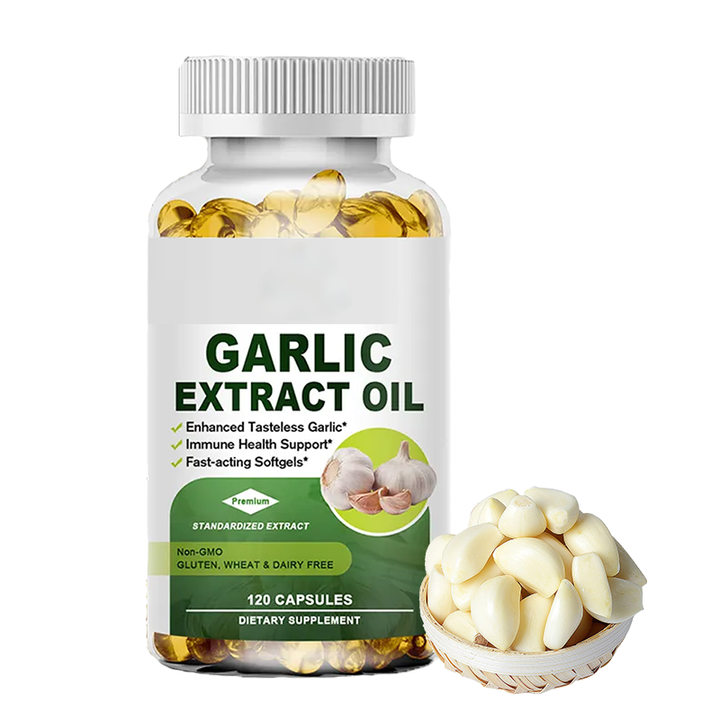 Aceite de ajo y aceite de pescado Omega-3 Suplemento de Softgel antioxidante 120 Cápsulas de Softgel Grado alimenticio saludable