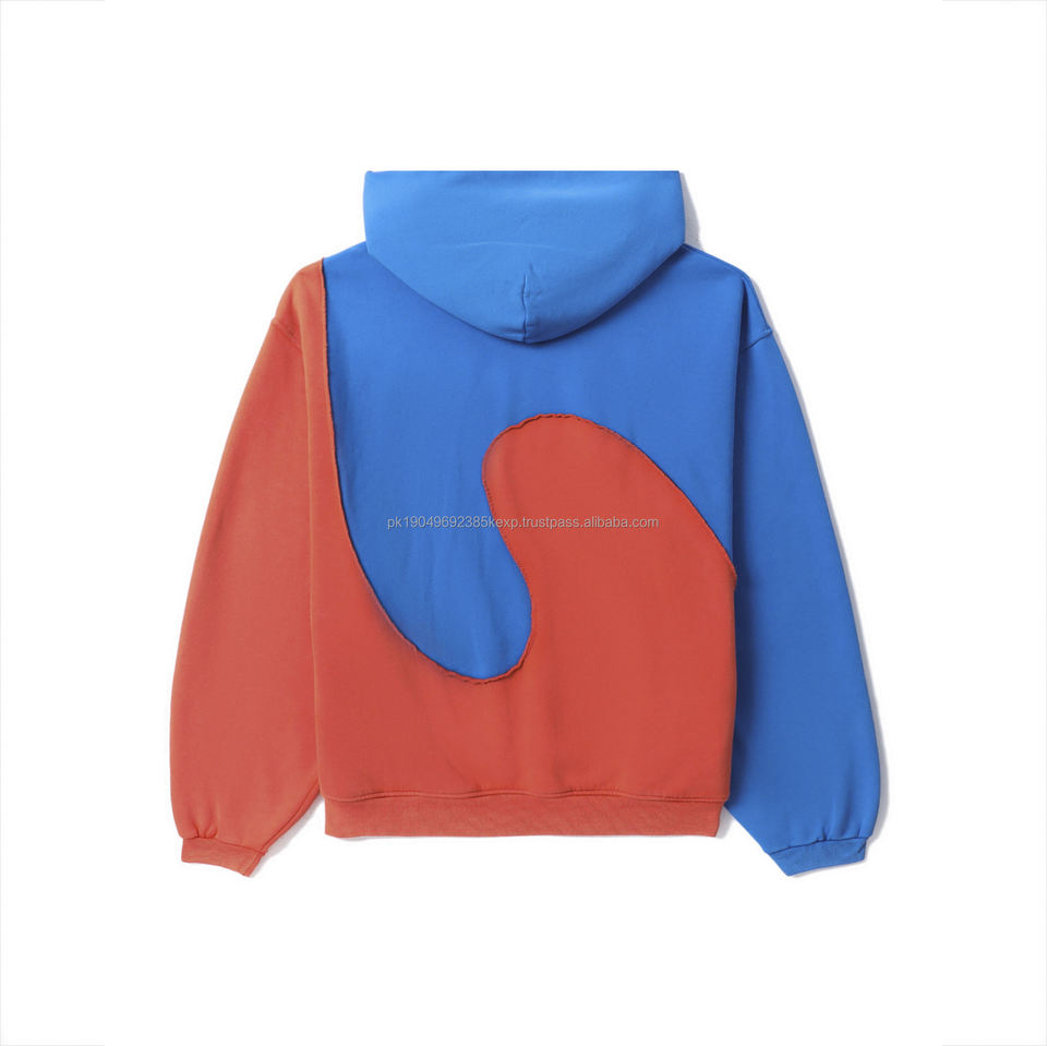 Sudadera con Capucha de Alta Calidad, Estilo Color Block con Parches en Contraste, Fabricada en Fábrica de Ropa, Felpa de Algodón Grueso de 600 g/m²