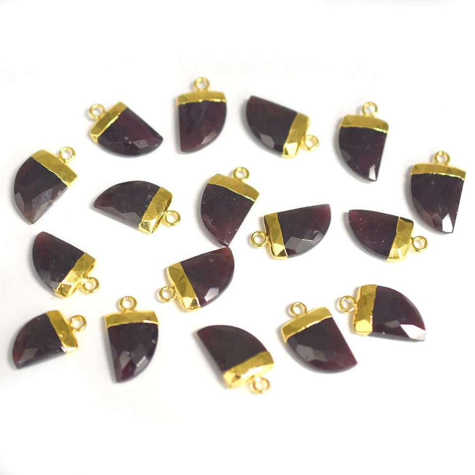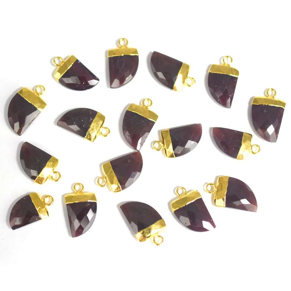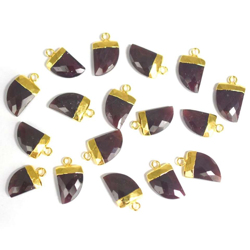 Colgante de Piedra Natural Facetada de Granate de 13 a 15 mm con Forma de Cuerno, Chapado en Oro, con Argolla, Accesorios de Joyería