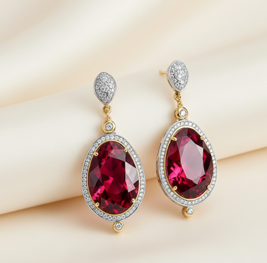 Nombre del Producto:Pendientes colgantes de circonita cúbica ovalada granate 15*23