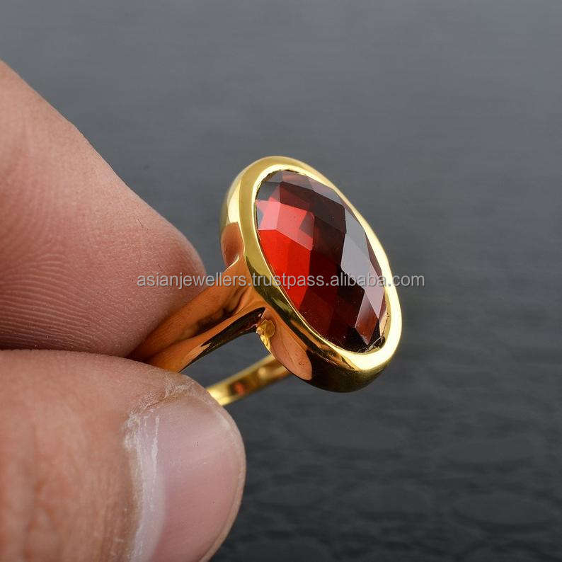 Anillo de piedras preciosas de cuarzo granate en plata de ley 925, joyería única de moda hecha a mano hermosa chapada en oro