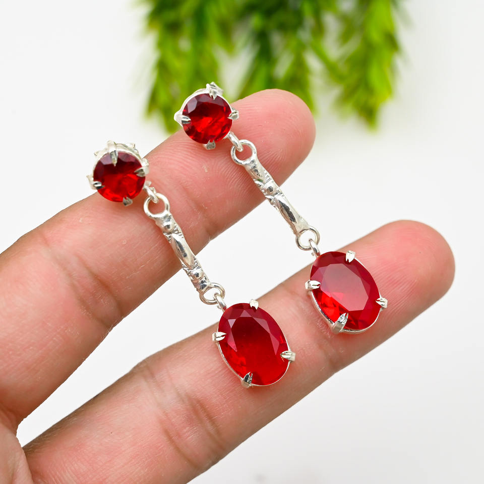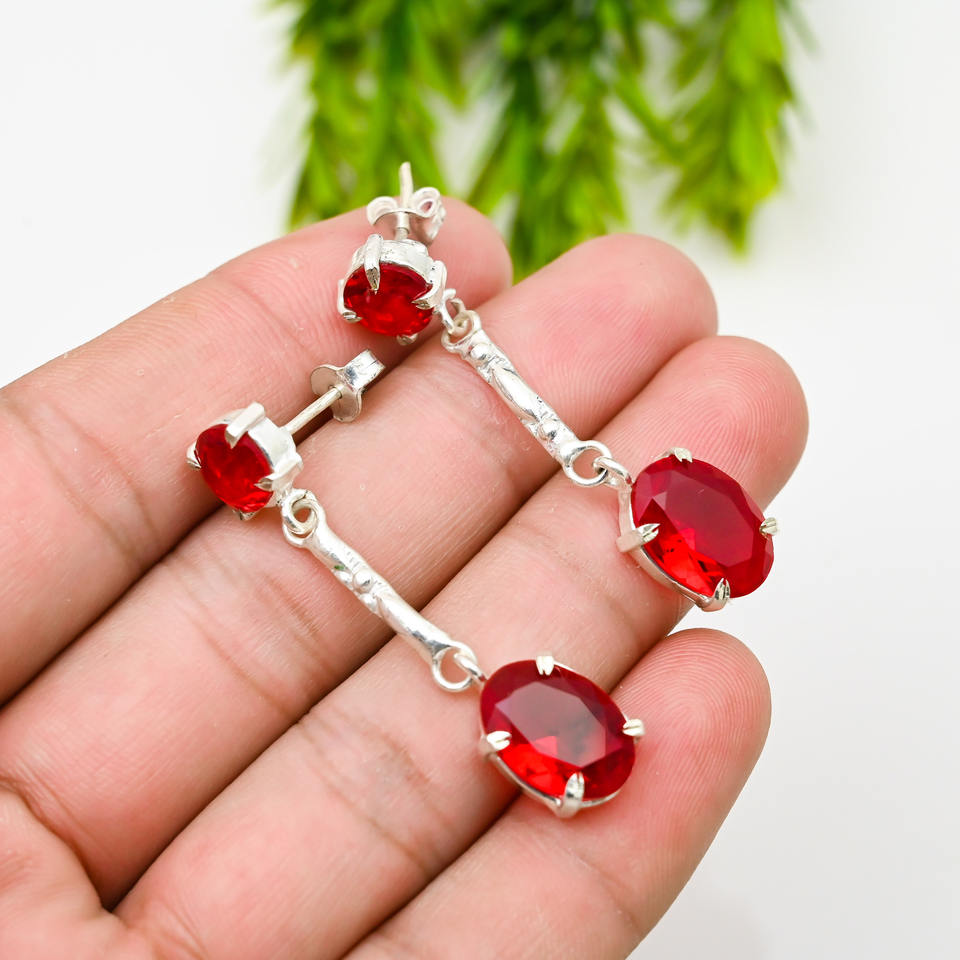 Pendientes Personalizados de Plata con Granate de Mozambique, Color Rojo, Forma Ovalada, Joyería con Piedra Preciosa Solitaria