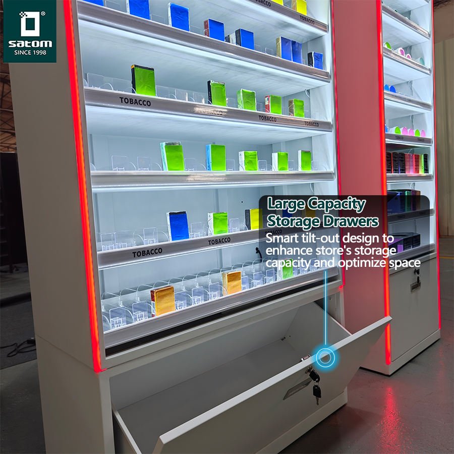 Exhibidor de Tabaco de Metal de 9 Niveles con Caja de Luz LED para Tienda de Gasolinera