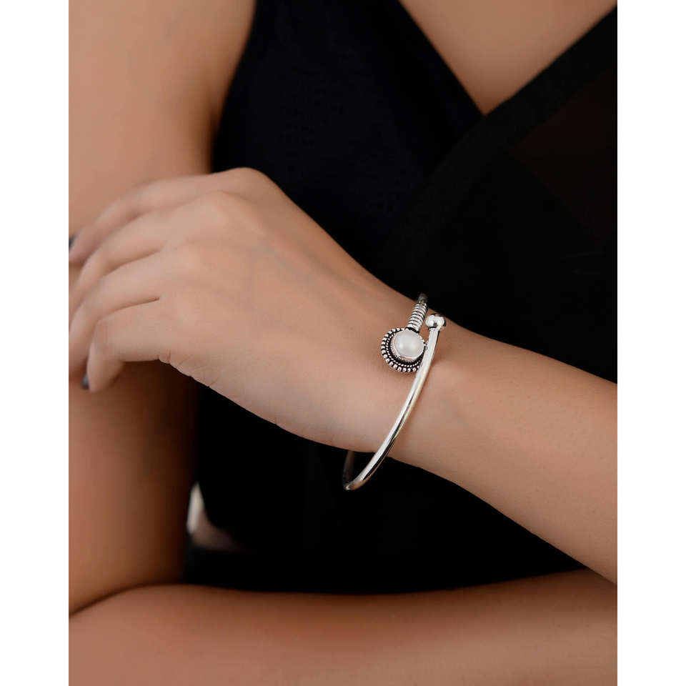 Pulsera y Brazalete de Plata con Perlas Gaurika de Meera Jaipur, Colección de Joyería Elegante