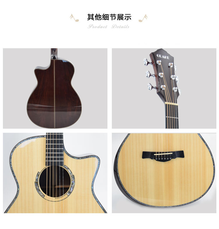 Geake Longquan All-Solid Guitarra acústica de 41 pulgadas Cuerpo de abeto brillante de alta calidad Caoba Ébano Venta al por mayor caliente
