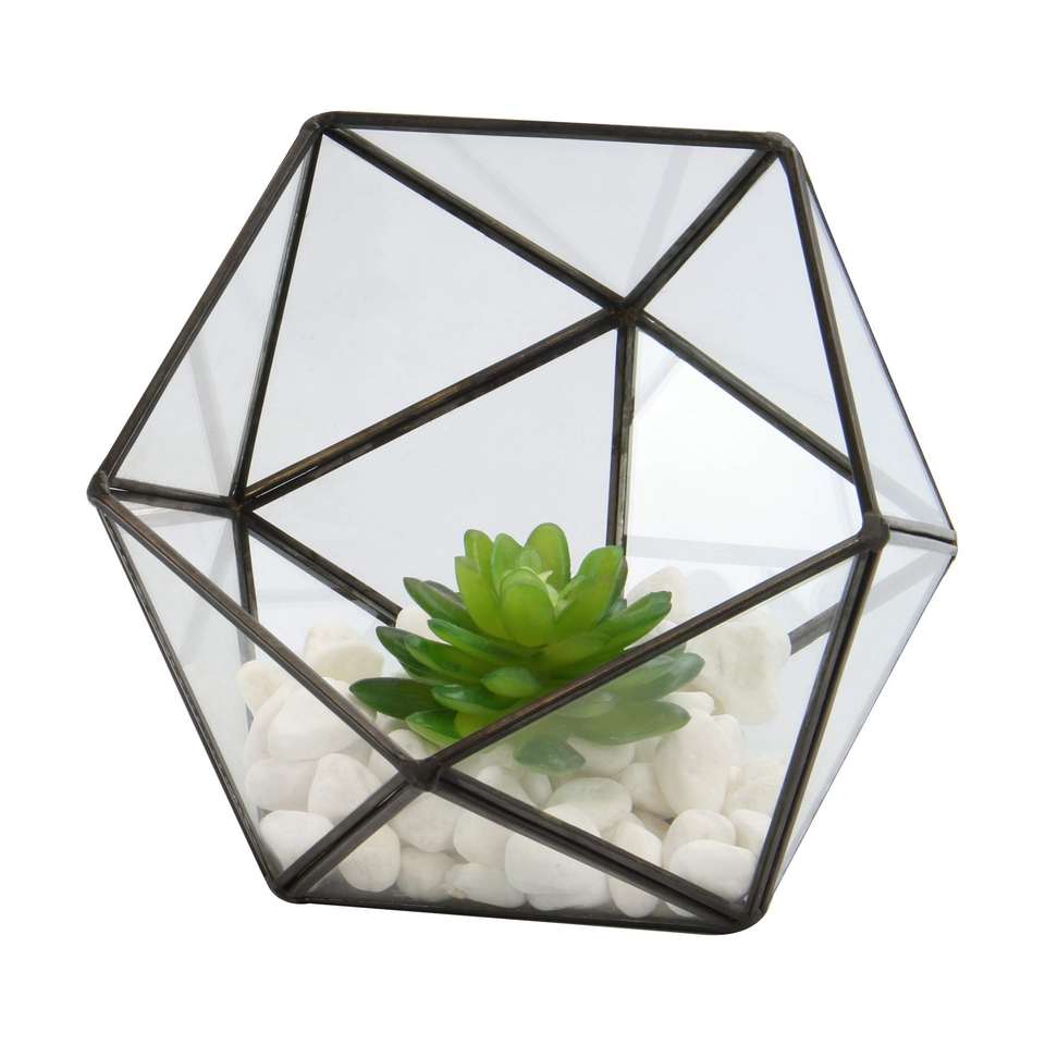 Jarrón de Vidrio de Diseño Geométrico con Marco de Metal, Terrario de Vidrio para Plantas y Flores, Almacenamiento de Mesa y Terrario Colgante de Vidrio