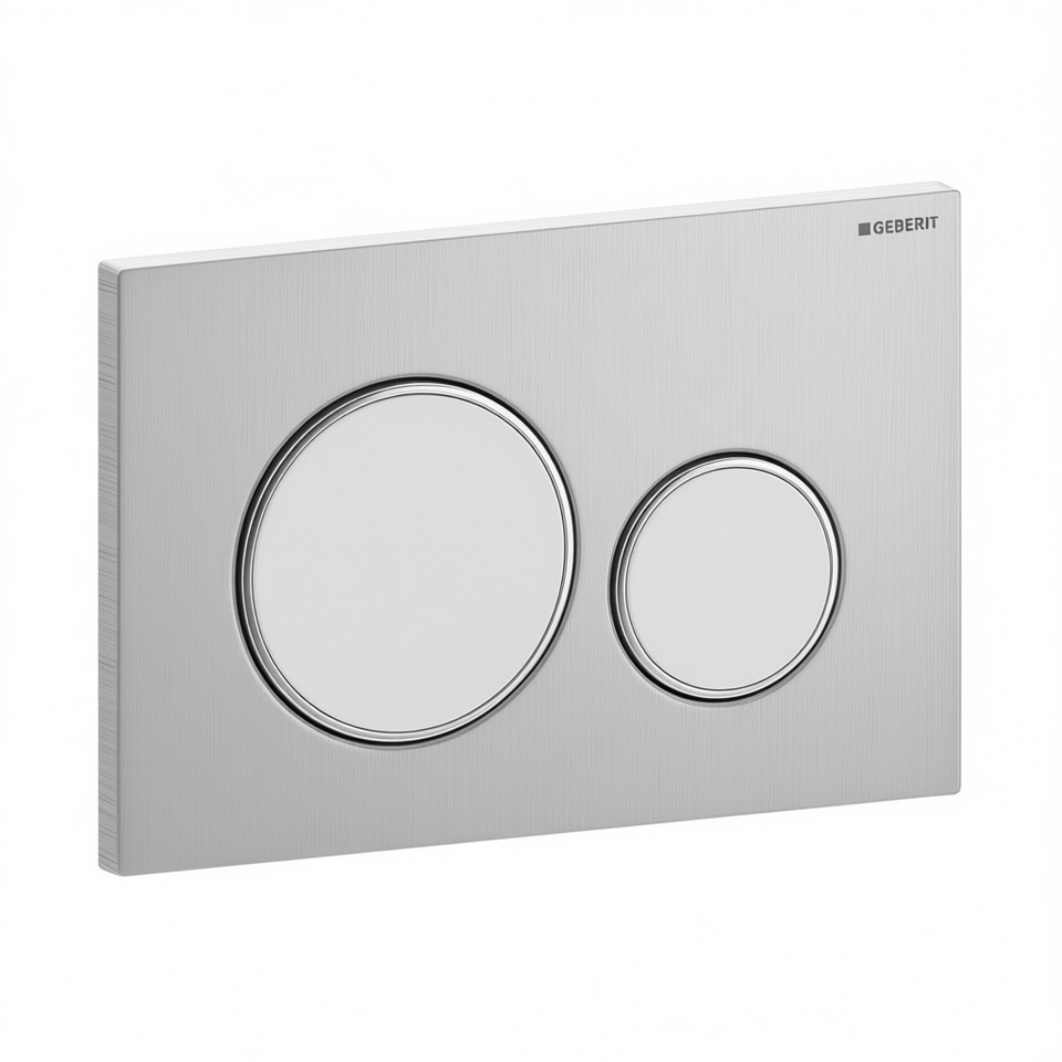 Placa de cubierta Geberit Sigma 20 de 2 botones con bordes pulidos y cepillados para botones de inodoro