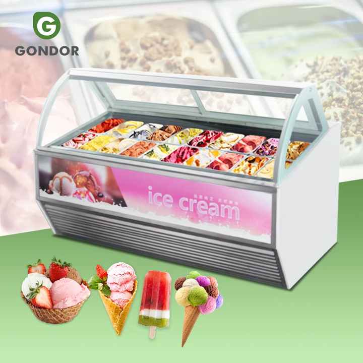 Vitrina Exhibidora de Gelato, Congelador Automático Italiano Tailandés de 18 Bandejas, Refrigerador para Helados Duros para Hoteles