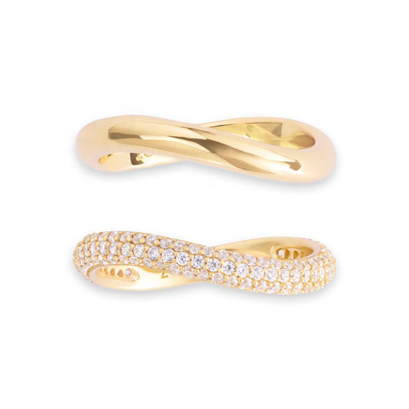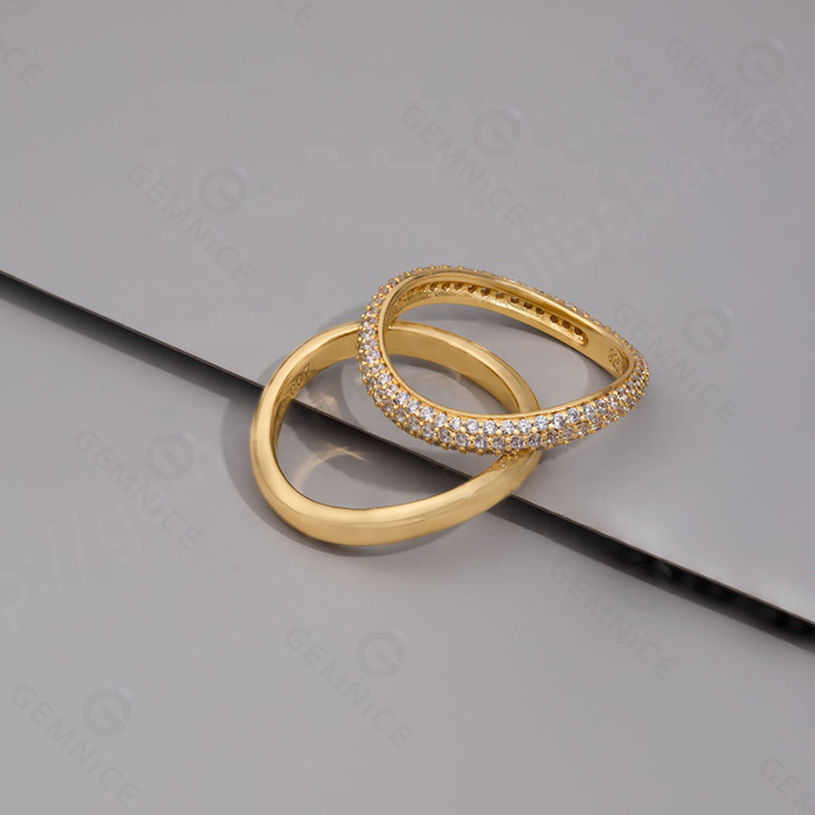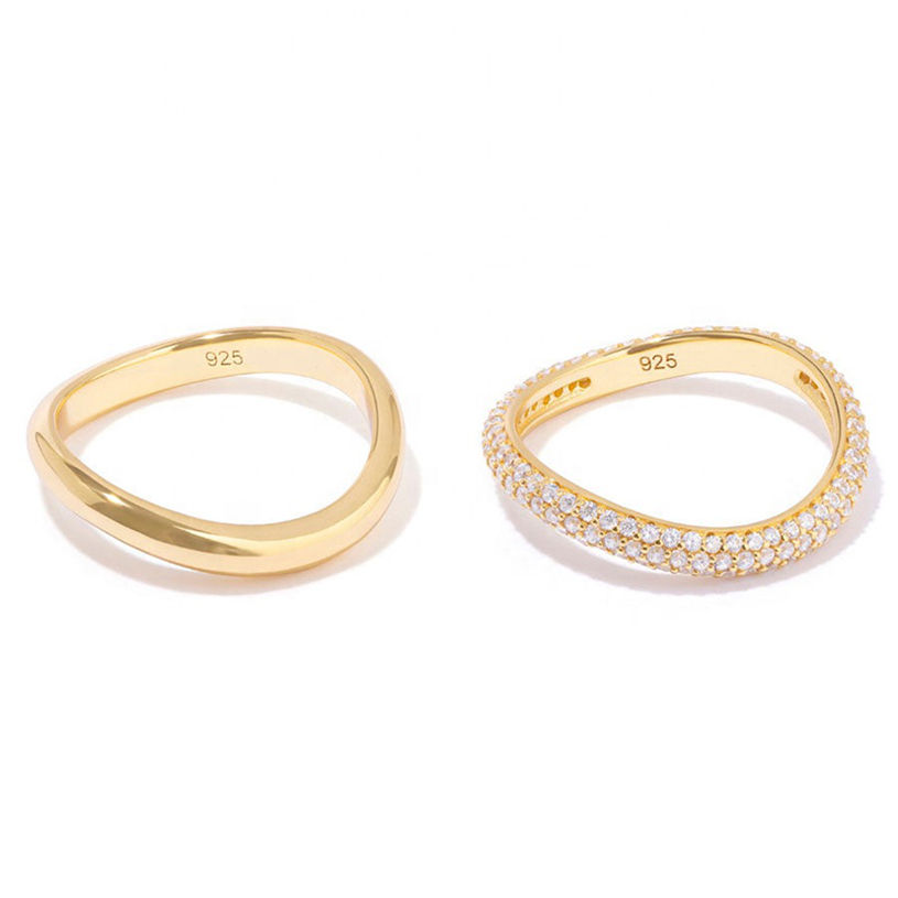 Producto:Anillo de diamante blanco chapado en oro de la boda y elegantes anillos de onda conjunto