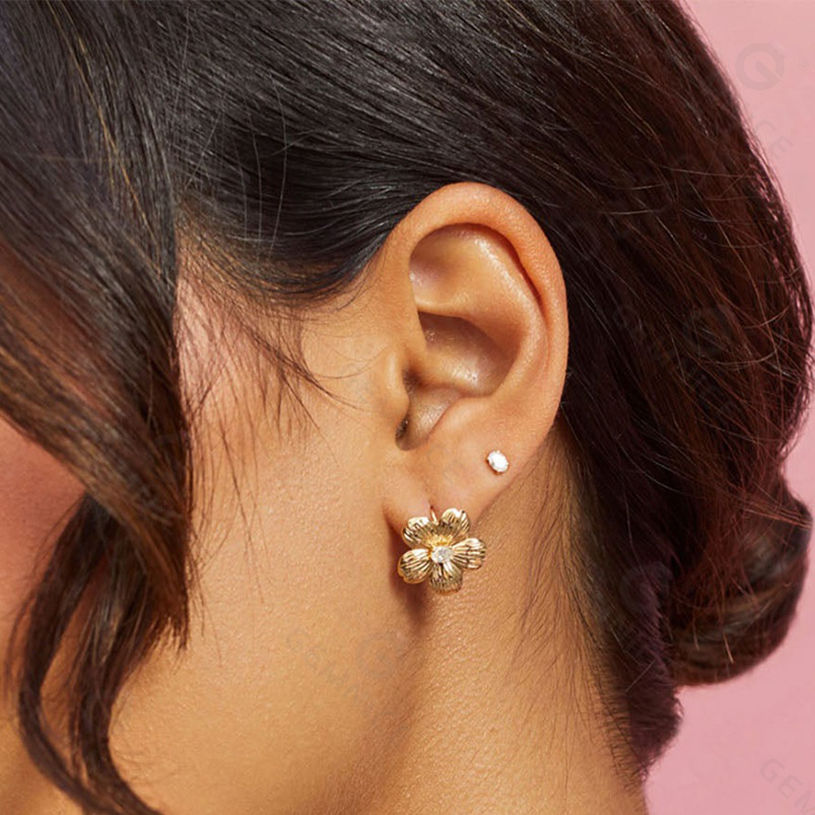 Nombre del Producto:Pendientes de flor de cerezo con incrustaciones de diamantes ovalados, regalo para el Día de la Madre.
