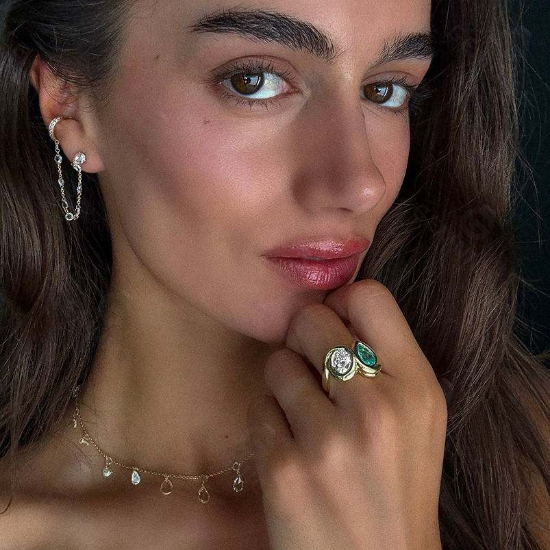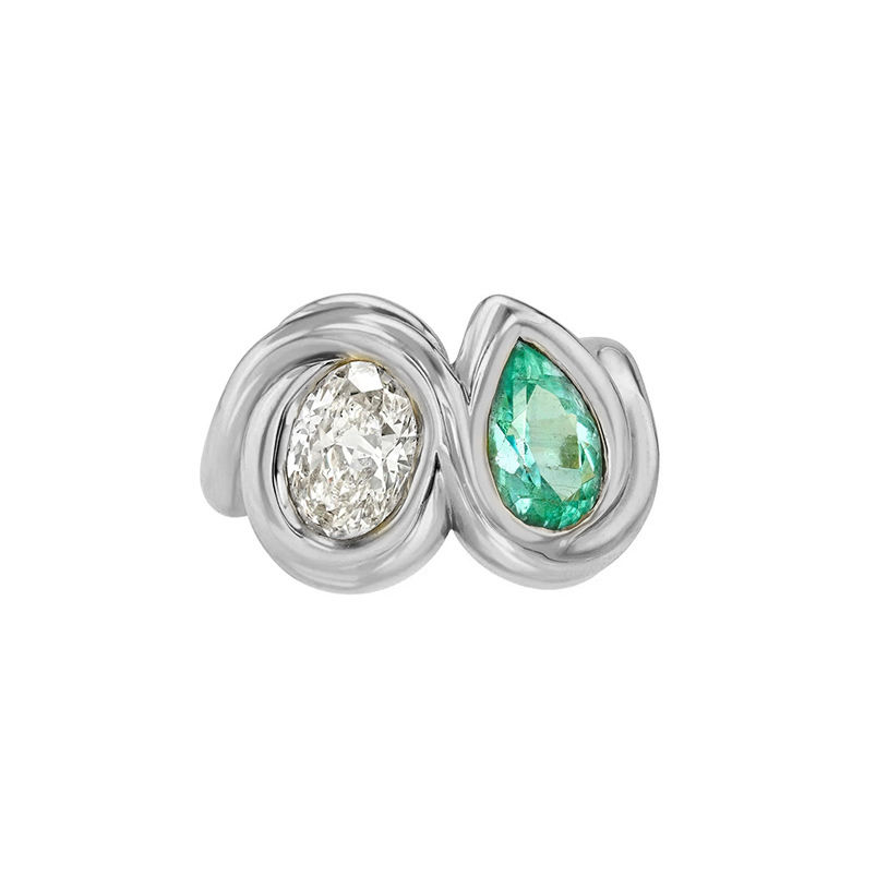 Gemnel, recién llegado, anillo de doble Diamante Blanco y esmeralda apilable versátil a la moda para mujer