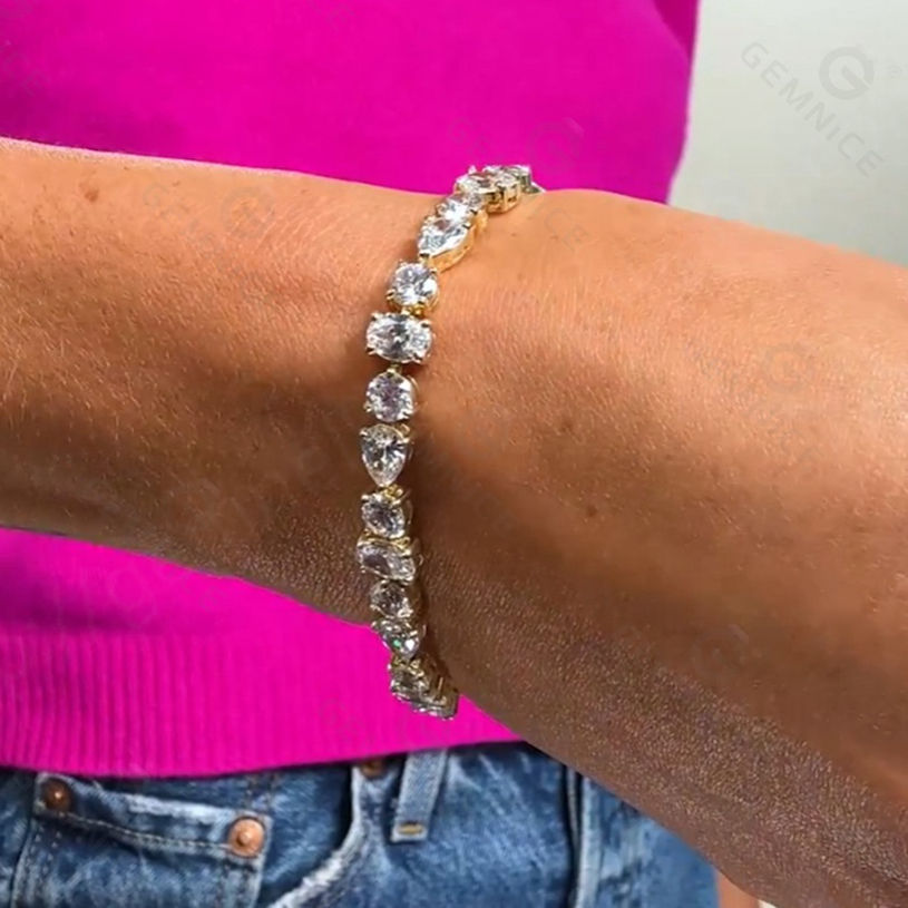 Producto:Pulsera de tenis con diamantes de diferentes formas: redondos, en forma de lágrima y ovalados.