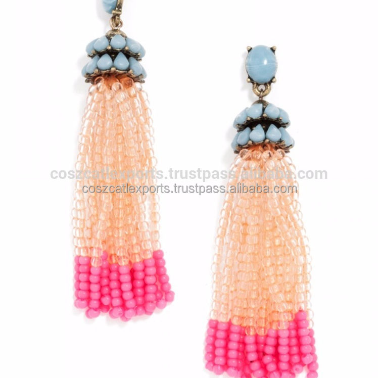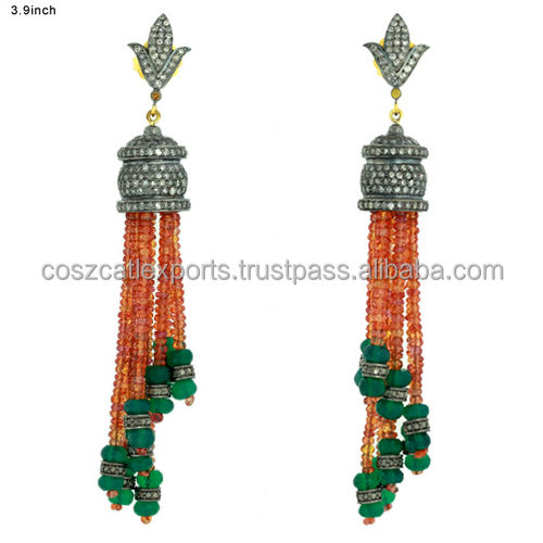 Pendientes de borla de cuentas de piedras preciosas joyería