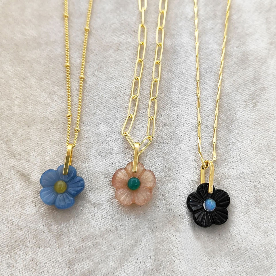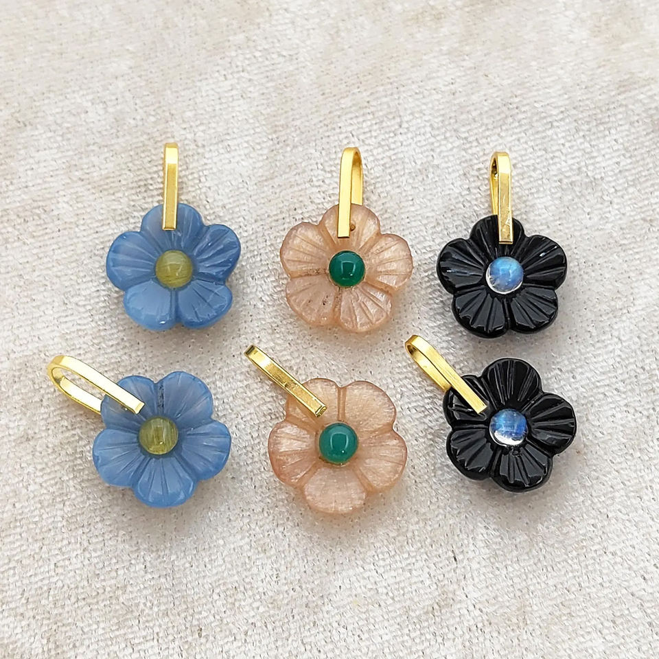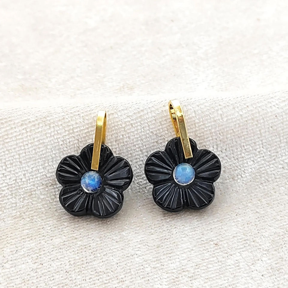 Piedras preciosas:Piedra lunar del melocotón, Calcedonia azul, ónix negro