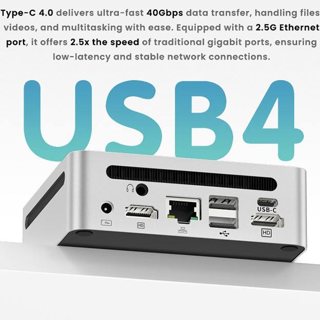 Mini PC GenMachine con AMD Ryzen 7 7840U de 8 Núcleos y 16 Subprocesos, DDR5 16/32, Disco Duro SSD de 512 GB, Windows 11, Wifi6 para Gamers