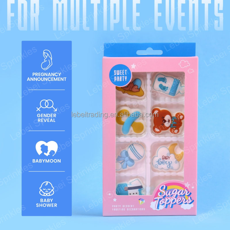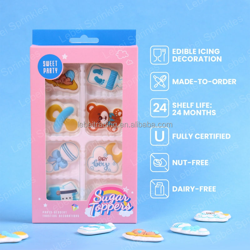 Decoración Comestible para Pastel de Revelación de Género, Ropa de Bebé Azul, Decoración de Azúcar, Decoraciones Comestibles de Glaseado Real para Fiesta de Baby Shower