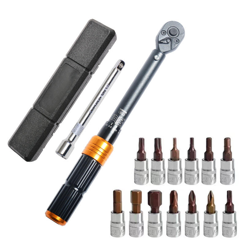 Llave Dinamométrica General de 1/4 Pulgada (254 mm) con Pantalla de Escala, Acero al Cromo Vanadio, Juego de 15 Piezas para Reparación de Bicicletas