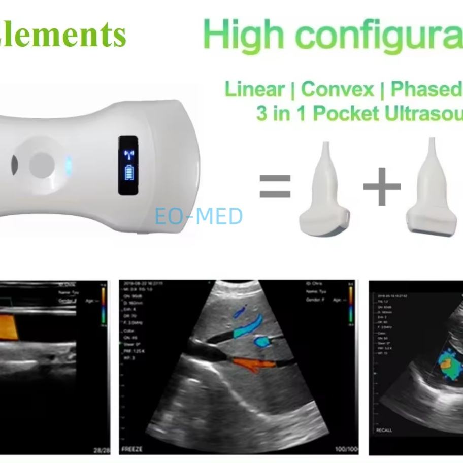 Ecógrafo Doppler Color Inalámbrico Portátil de Uso General con Sonda Convexa, Lineal y Cardíaca de 192 Elementos, Escáner Veterinario DCU19G
