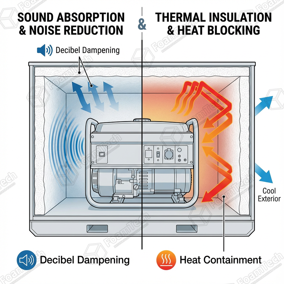Espuma de Aislamiento Térmico y Absorción Acústica para Generadores, Espuma Acústica Resistente a Altas Temperaturas para Cajas de Generadores