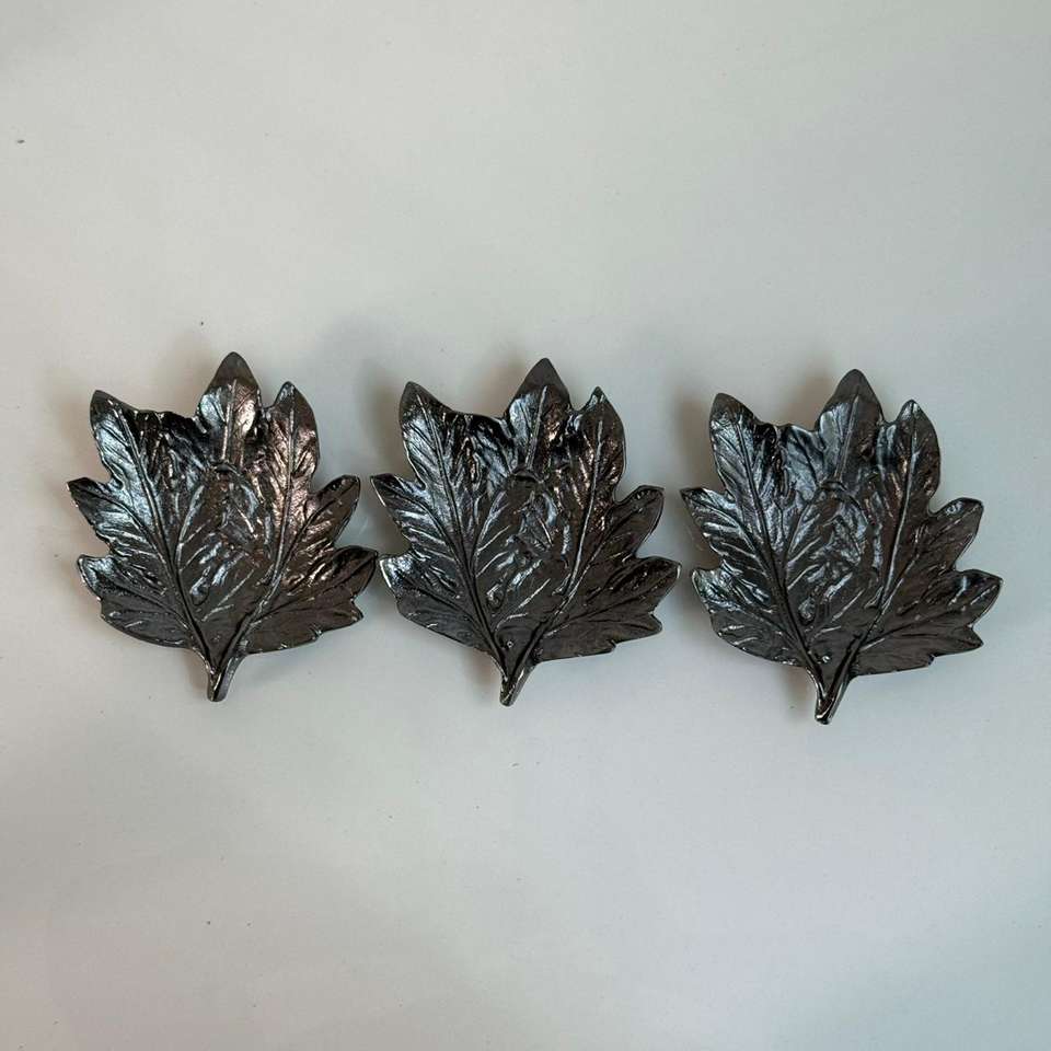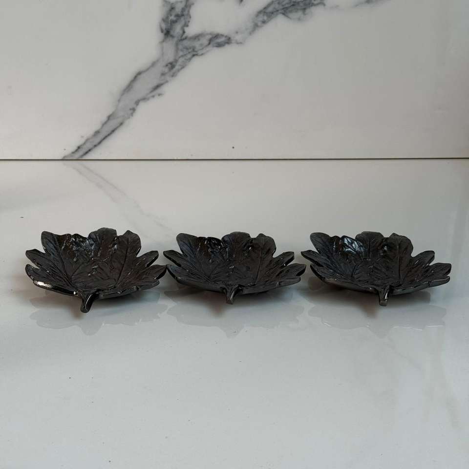 Juego Genérico de 3 Tazones para Frutos Secos, Diseño Clásico con Acabado en Níquel Negro, Tazón de Hojas Hecho a Mano para la Celebración de Bodas