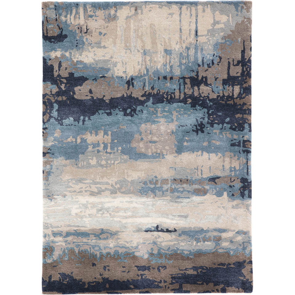 Alfombra Genesis Azul de Lana y Viscosa Hecha a Mano con Técnica Jacquard Abstracta, Diseño Rectangular a Rayas para Pasillo, para el Hogar, Taq-4304 4m