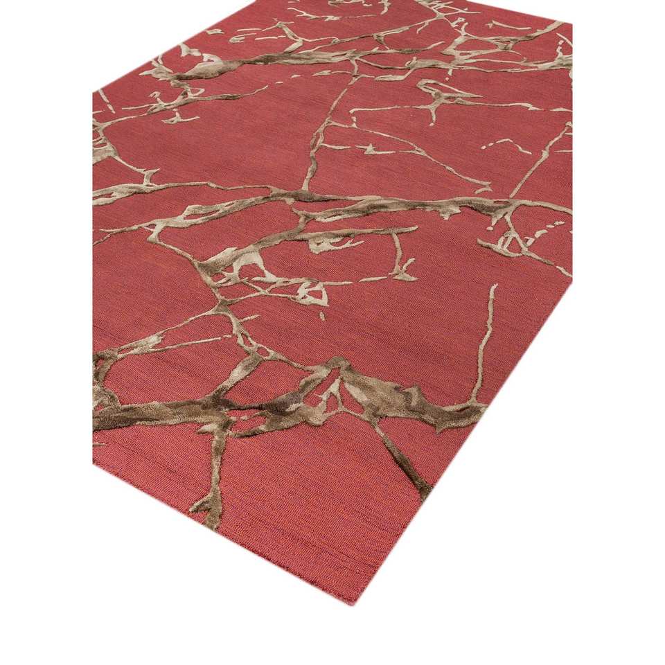 Alfombra de Lana y Viscosa Tejida a Mano Genesis, Diseño Abstracto Rojo Naranja para Decoración de Sala de Estar, Pasillo, TNQ-4390, Alfombra para Sala de Estar